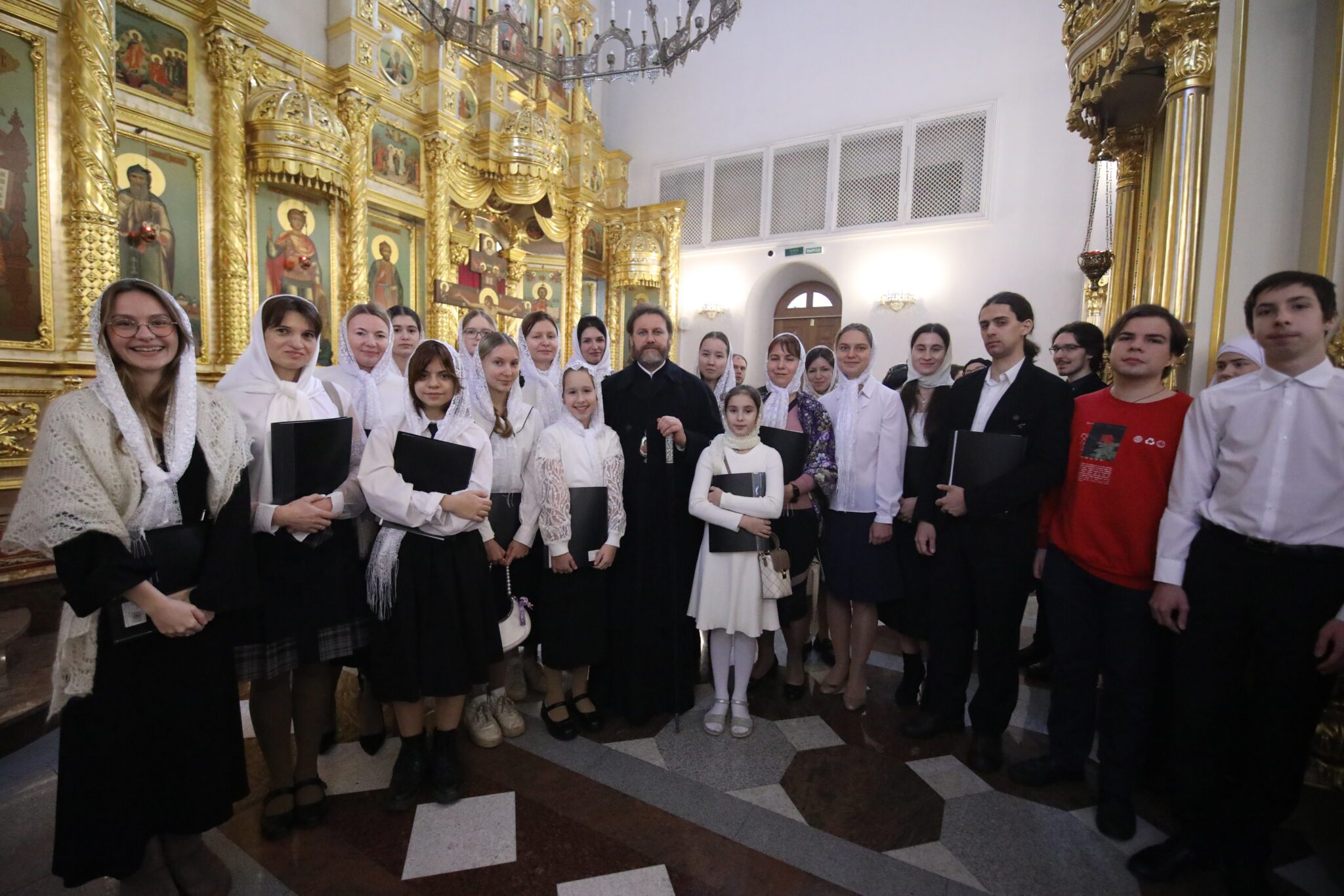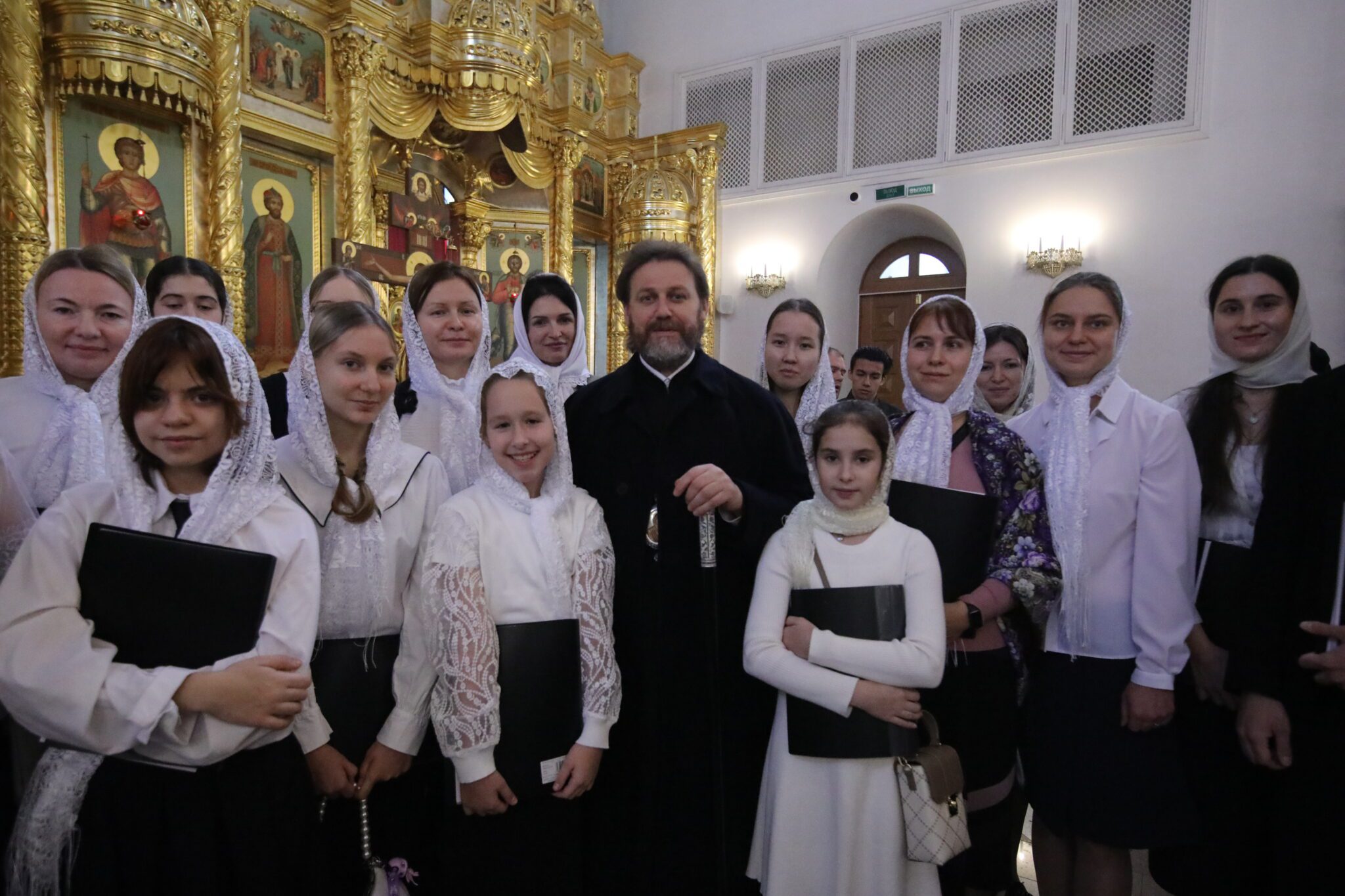 В исполнении богослужебных песнопений принял участие молодежный хор воскресной школы Георгиевского кафедрального собора.
