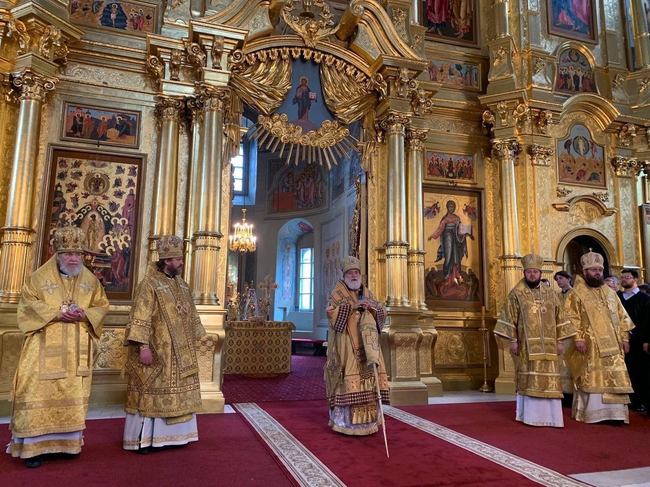 По окончании богослужения было совершено славление святым первоверховным апостолам, после чего архиепископ Фома зачитал поздравительный адрес от Святейшего Патриарха Кирилла имениннику — митрополиту Павлу.