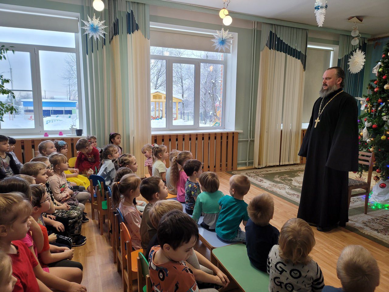 18 января настоятель Успенского храма с. Онуфриево священник Михаил Сорокин посетил детский сад с. Онуфриево. Батюшка поздравил детей и педагогов с наступающим Святым Богоявлением и поблагодарил за теплый прием. В конце встречи состоялось чаепитие, во время которого отец Михаил обсудил с педагогами планы по дальнейшему взаимодействию.