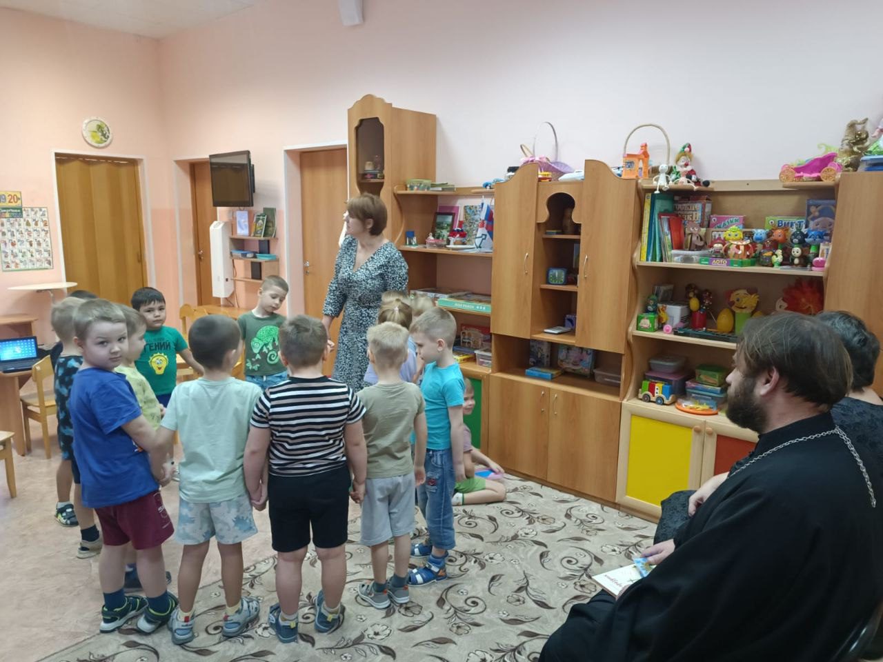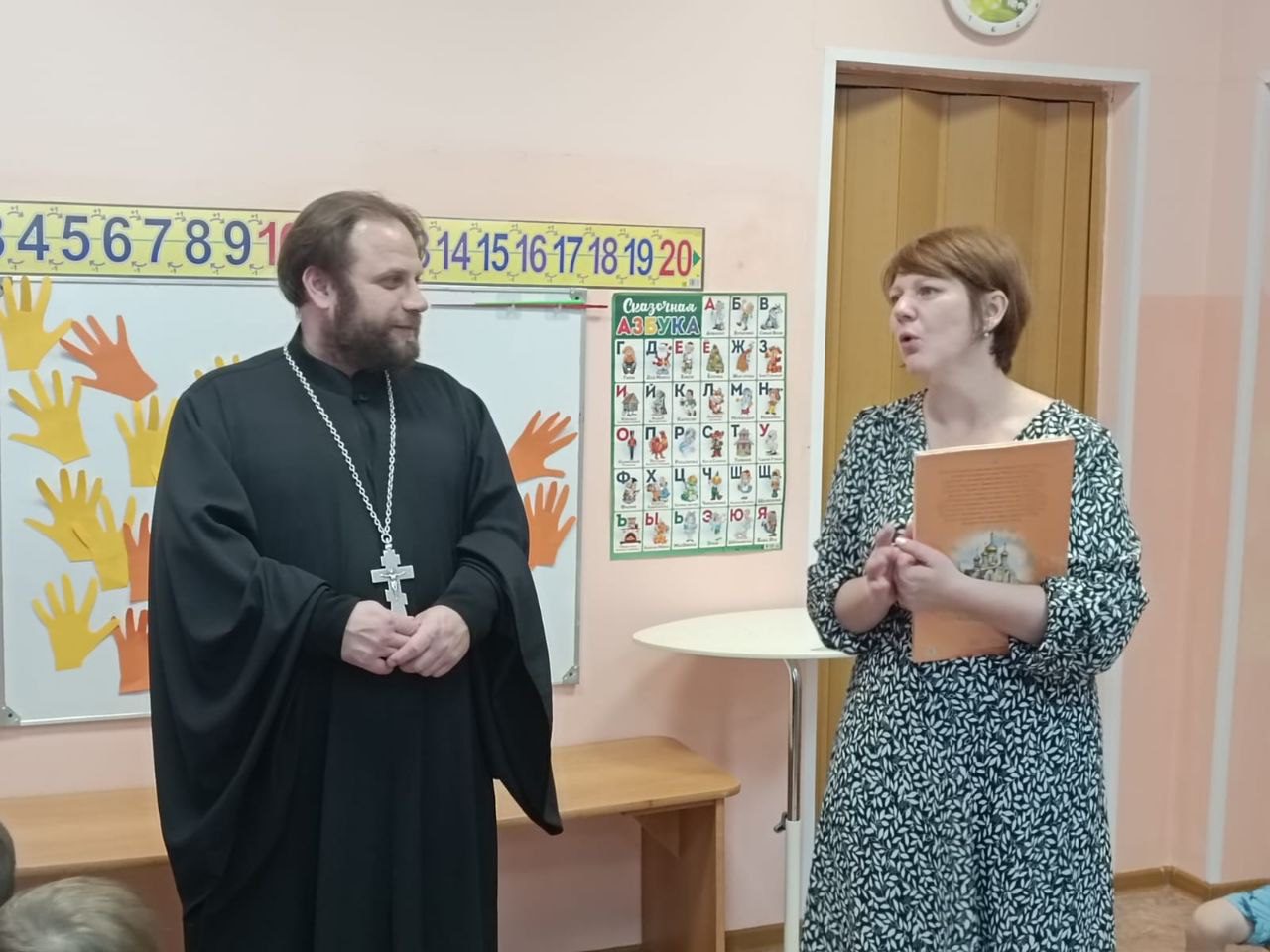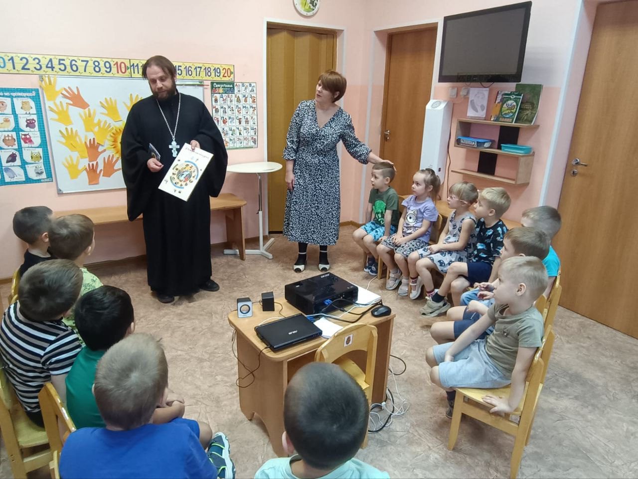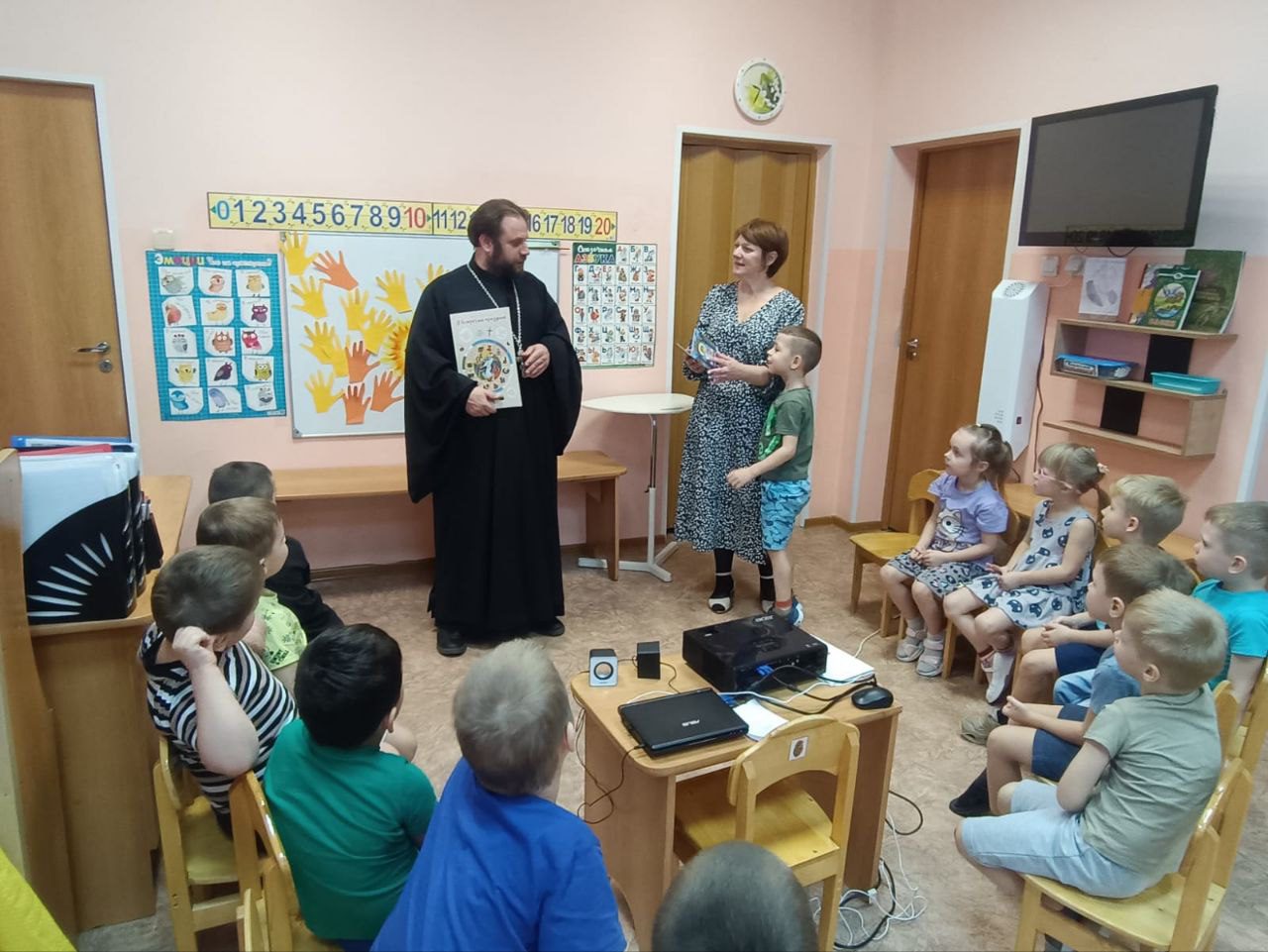 В подарок батюшка подарил детям книгу “Я встречаю праздник”. Священник отметил важность таких встреч с дошколятами, именно в тот момент, когда наступает формирование личности.