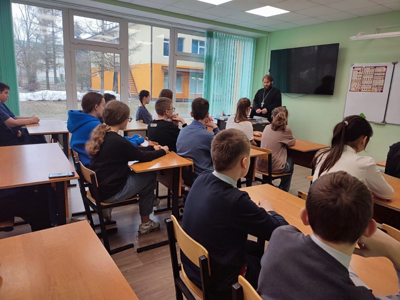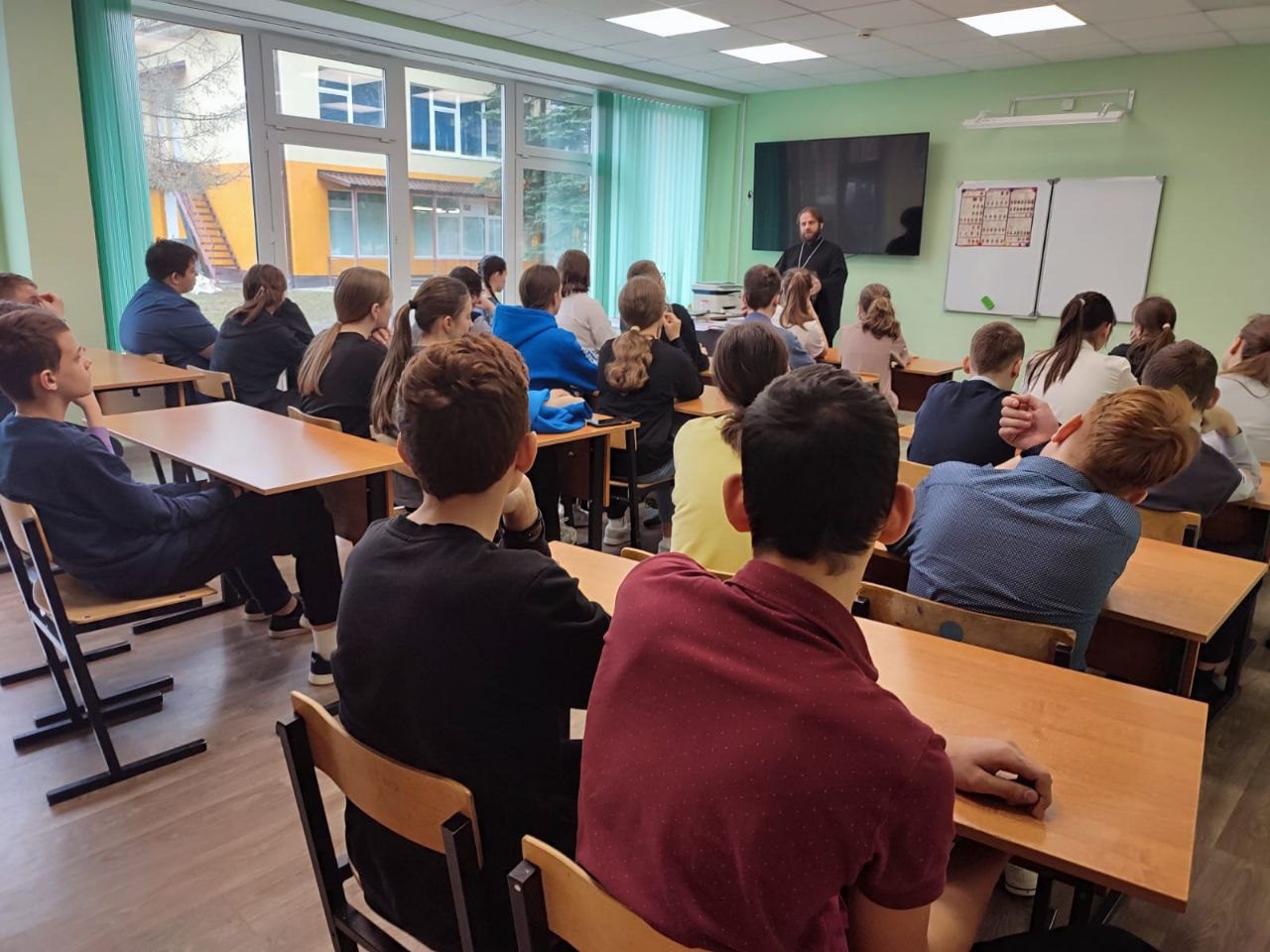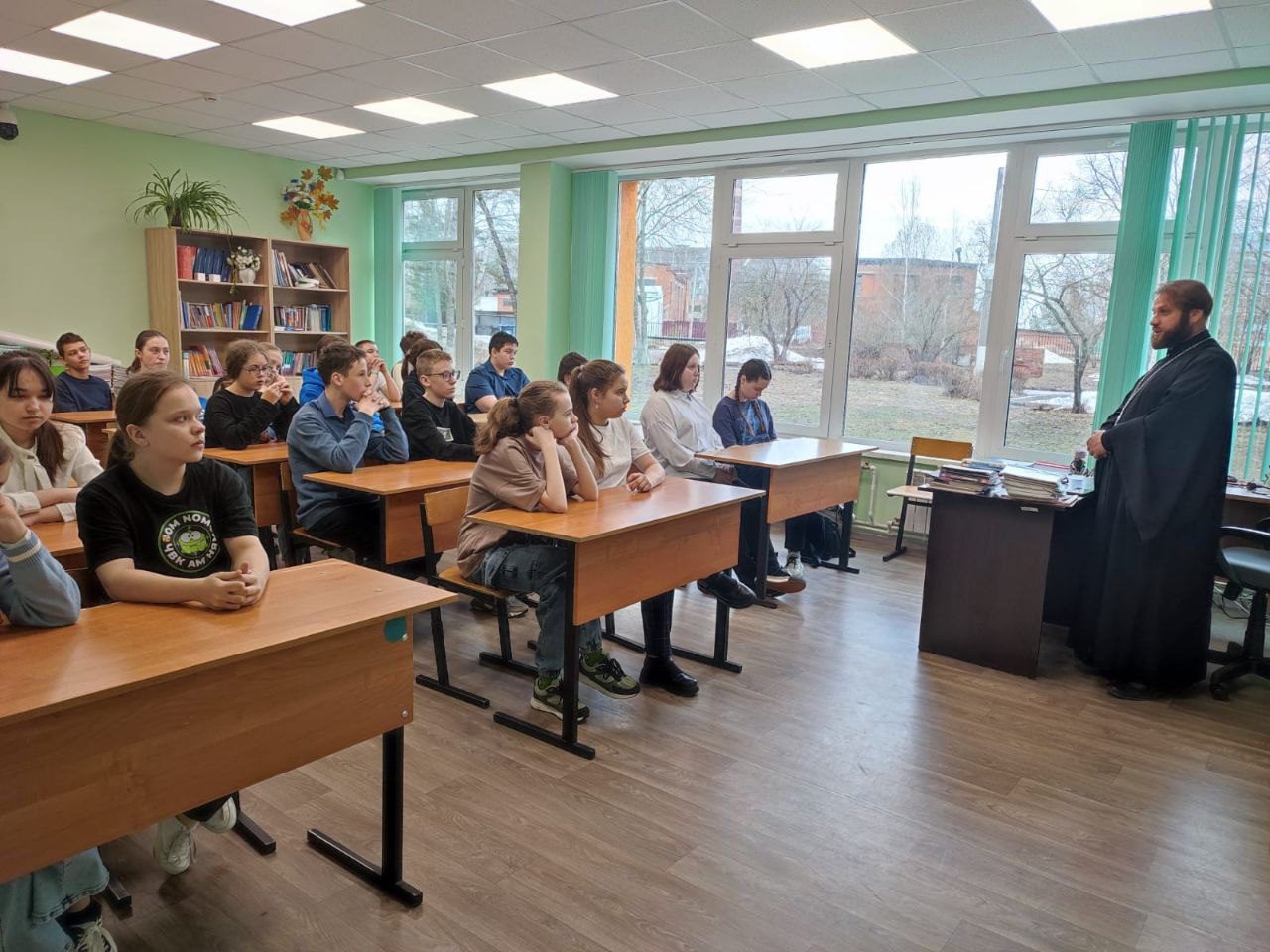4 апреля настоятель храма Рождества Пресвятой Богородицы в Шитьково иерей Димитрий Пищерков встретился с учениками 7 класса МОУ «Сычевская средняя общеобразовательная школа». На протяжении двух уроков священник разговаривал с ребятам о Библии и главной её части, Евангелии. Отвечая на интересующие подростков вопросы были затронуты темы: добра и зла, жизни и смерти, искусства и целях человека. Отец Димитрий подарил школьникам небольшие подарки и передал в библиотеку несколько экземпляров Евангелия и книг миссионерской направленности.