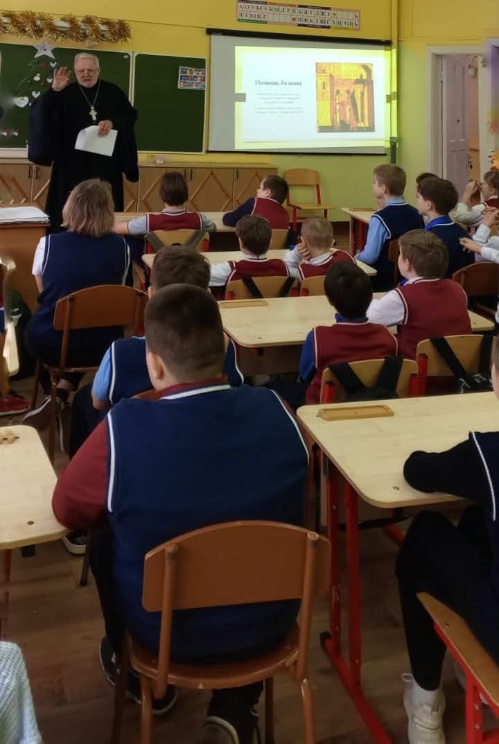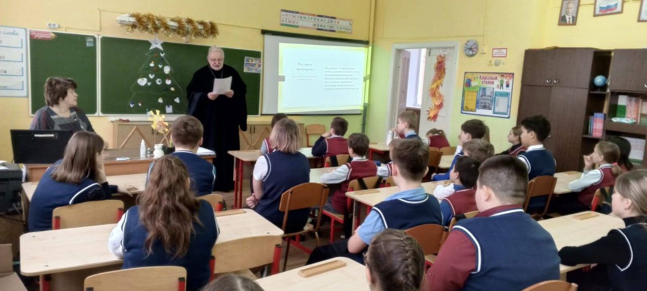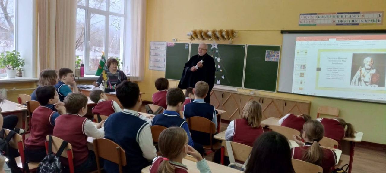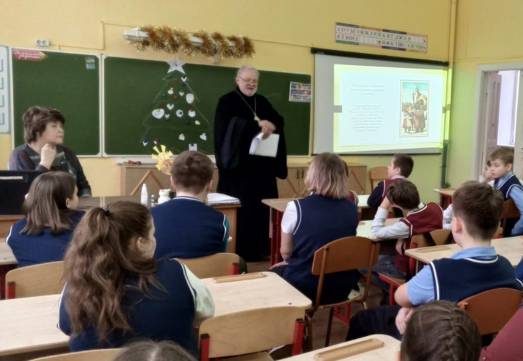 25 декабря настоятель Покровского храма д.Алексино протоиерей Вадим Владышевский по приглашению преподавателя младших классов Светланы Варивода принял участие во встрече с учащимися четвёртых классов МБОУ «Кожинская СОШ» на тему «Милосердие и сострадание на примере жития Святителя Николая, архиепископа Мир Ликийских, чудотворца». Отец Вадим рассказал ребятам о жизни Святого, его деятельном милосердии и бескорыстной помощи людям. После встречи протоиерей Вадим Владышевский ответил на многочисленные серьезные вопросы учащихся. Надеемся, подобные встречи станут регулярными.