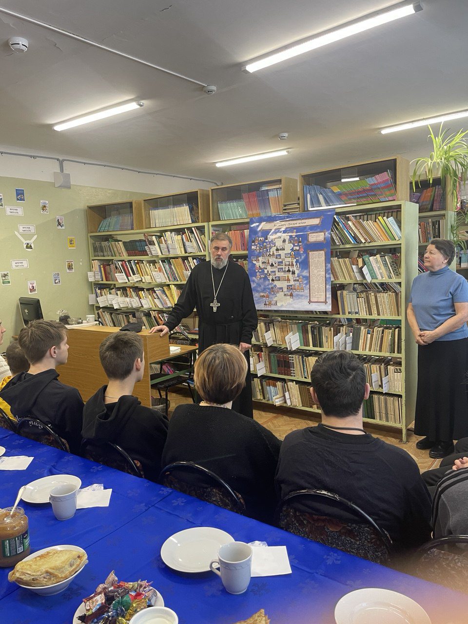 26 февраля 2025 года, на Масленичной неделе, настоятель Успенского храма прот. Вячеслав Осипов вместе с прихожанами посетил школу-интернат в посёлке Тучково. Священнослужитель рассказал ребятам о новомучениках и исповедниках Рузской земли. Завершилось мероприятие чаепитием с блинами за праздничным столом. В непринуждённой обстановке, беседуя со школьниками, участники встречи договорились о дальнейших встречах.