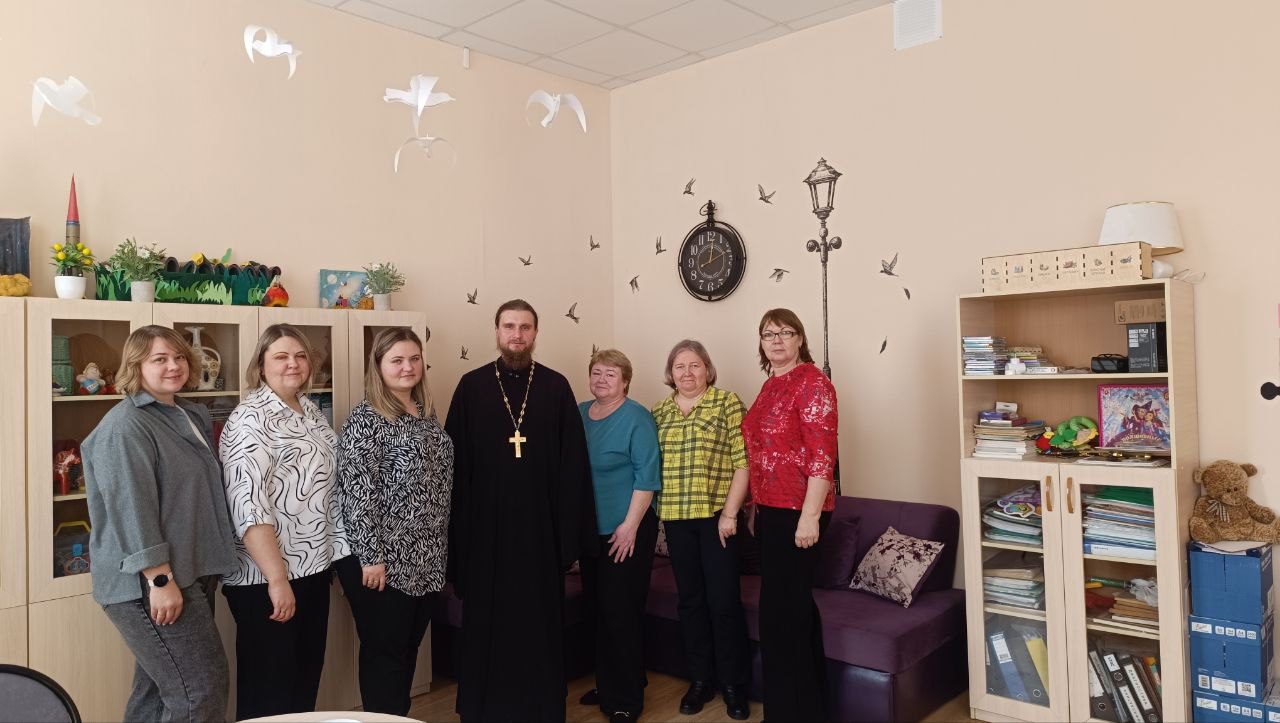 18 февраля в детском саду села Новопетровское состоялась встреча воспитателей дошкольных учреждений № 36 и №44 села и настоятеля Петропавловского храма священника Алексия Вареникова. Главной целью встречи была беседа о христианских ценностях, о Святых Таинствах Церкви. Священник также рассказал, как правильно подготовиться к Таинствам исповеди и Причастия, насколько они важны в жизни каждого христианина. Батюшка также ответил на волнующие вопросы. Беседа прошла в тёплой и доверительной обстановке. В завершении были обсуждены планы на грядущие мероприятия.