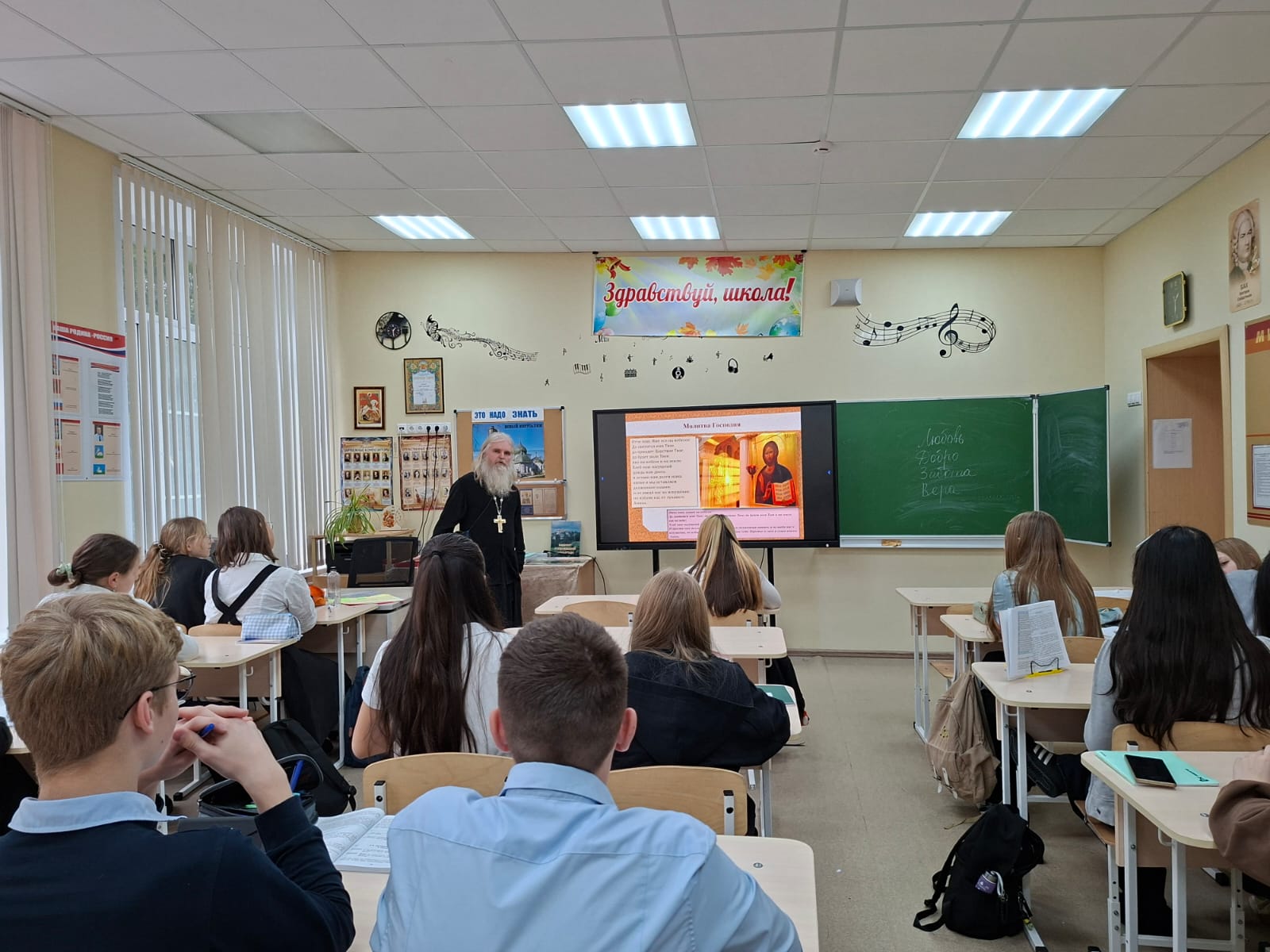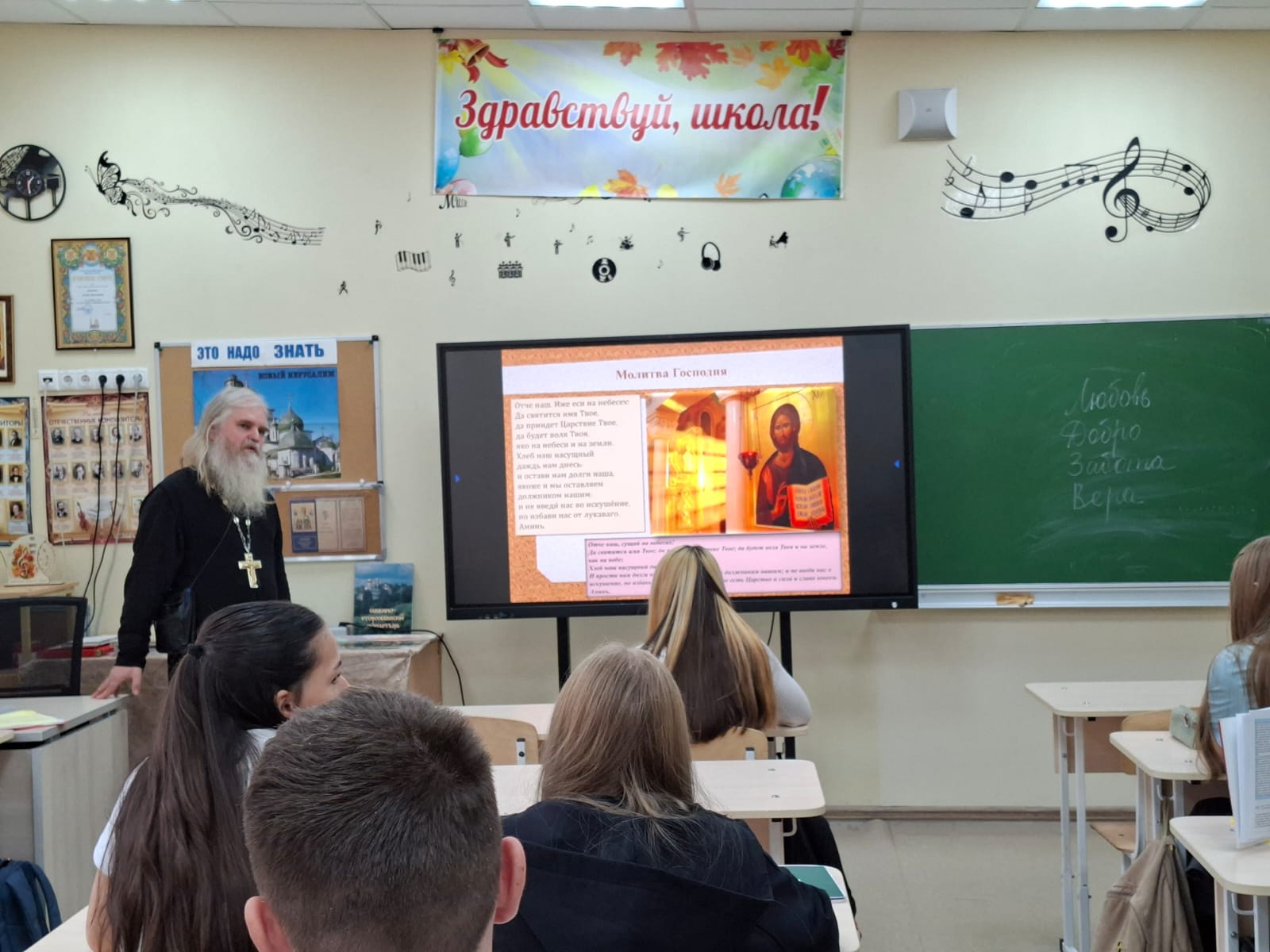 15 октября, в рамках предметной недели духовно-нравственной православной культуры, в Ершовском отделении средней общеобразовательной школы “КвантУм” г. Звенигорода состоялась встреча с клириком Вознесенского Собора г. Звенигорода иереем Петром Моргуновым. Отец Петр провел беседу о талантах и вере с ребятами из 7 “Ж” и 9 “Ж” классов и ответил на их вопросы.