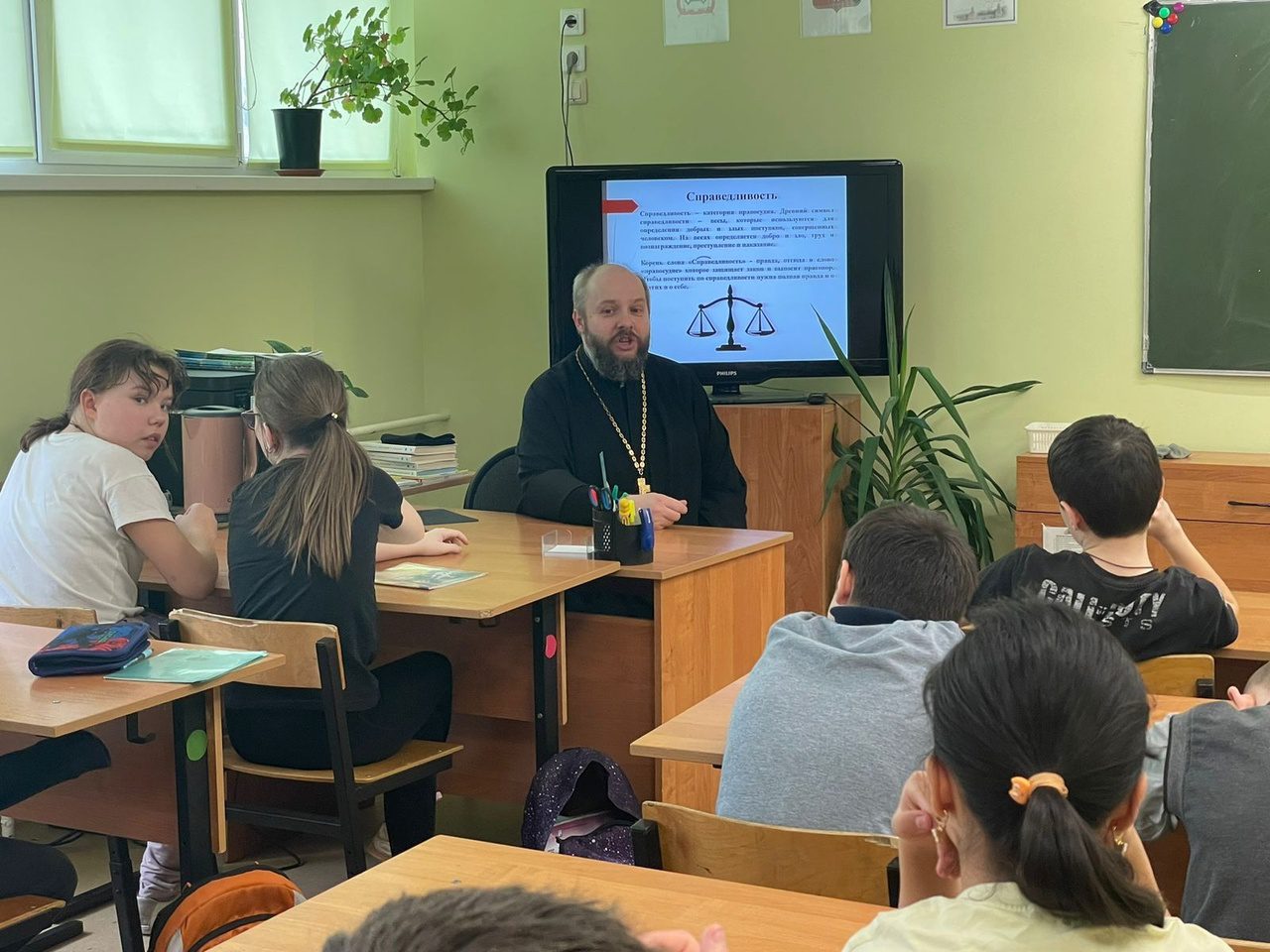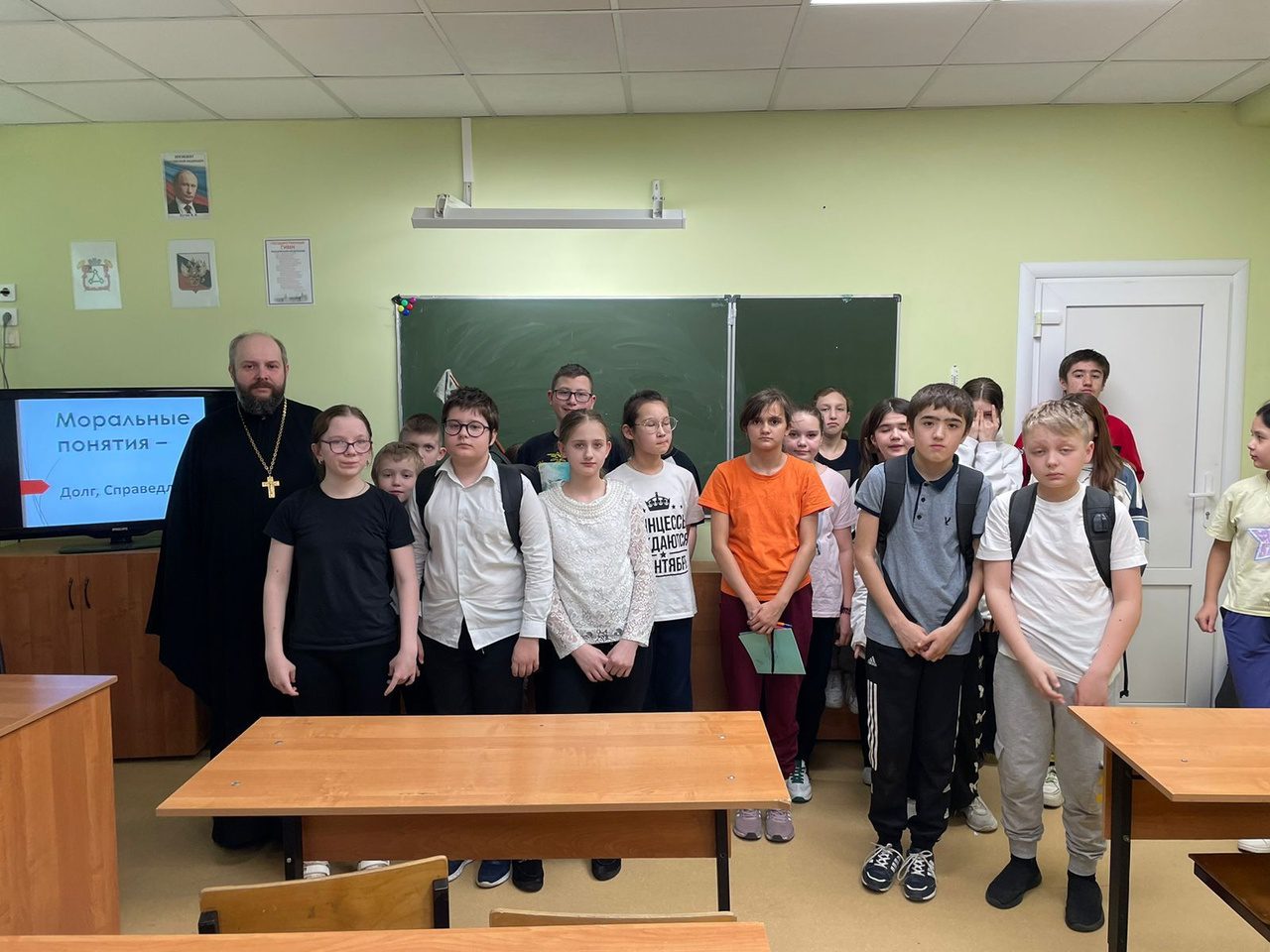 3 апреля по приглашению православного педагога-психолога Любови Георгиевны Овды заместитель благочинного Волоколамского округа священник Михаил Завитаев провел занятие с учащимися 5-х классов Волоколамской школы-интернат на тему: «Моральные понятия: долг, справедливость».