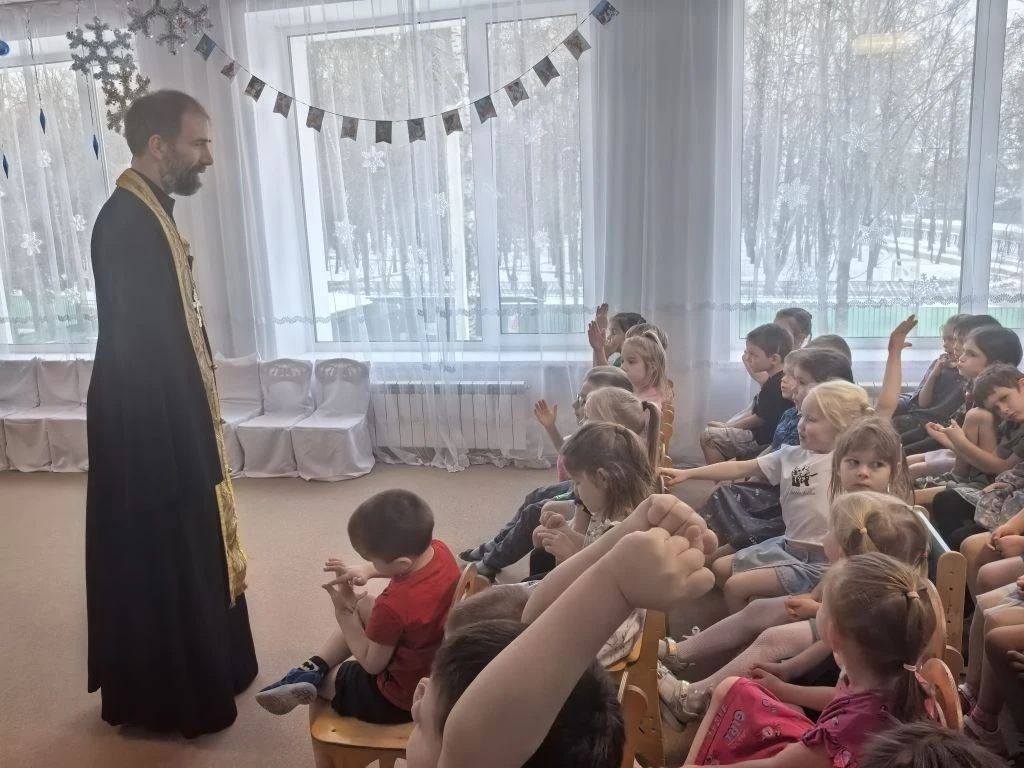 23 декабря клирик Георгиевского храма г. Дедовска иерей Алексий Кравченко провел в детском саду №5 беседу на тему: “Свет небесного Чуда”. Ребята из старших групп задавали вопросы и активно участвовали в диалоге. Также священник вместе с детьми совершил краткий молебен и окропил всех желающих святой водой.