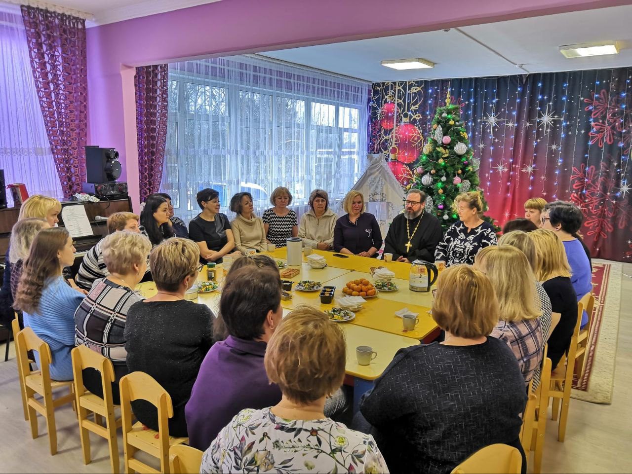 27 декабря настоятель Мироносицкого храма г. Истра священник Павел Малкин, по приглашению коллектива воспитателей, посетил детский сад №21. Это уже не первая встреча, на которых священнослужитель рассказывает об основах православной веры, богослужении, церковных Таинствах и отвечает на вопросы. В этот, за небольшим праздничным чаепитием, священник Павел рассказал о празднике Рождества Христова и призвал всех в эти дни найти возможность прийти в храм, исповедаться и причаститься Святых Христовых Таин.