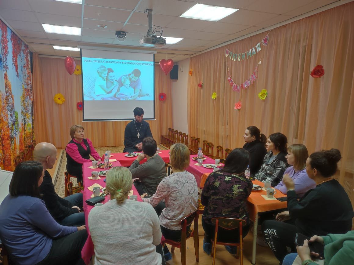 24 ноября клирик Георгиевского храма города Дедовска священник Николай Ризниченко посетил детский сад №13 и провёл беседу-чаепитие с воспитателями и родителями на тему: «Роль отца и матери в воспитании детей». В течение беседы все присутствующие смогли задать интересующие их вопросы о вере в Бога и о христианском воспитании детей.