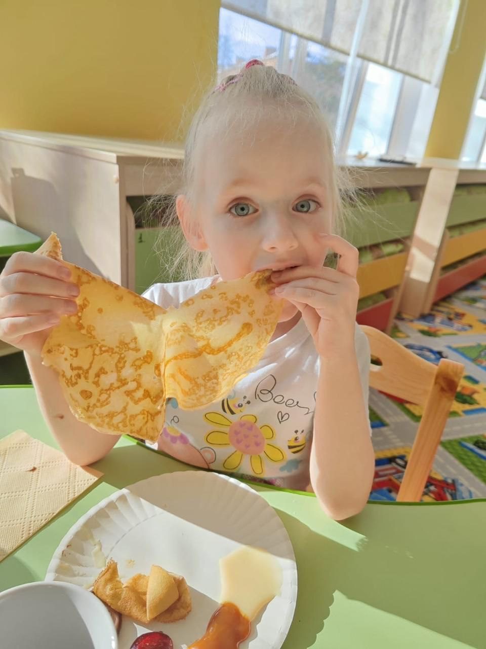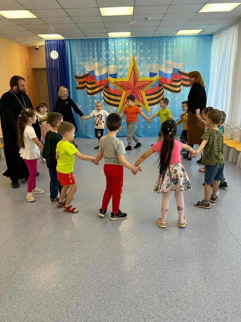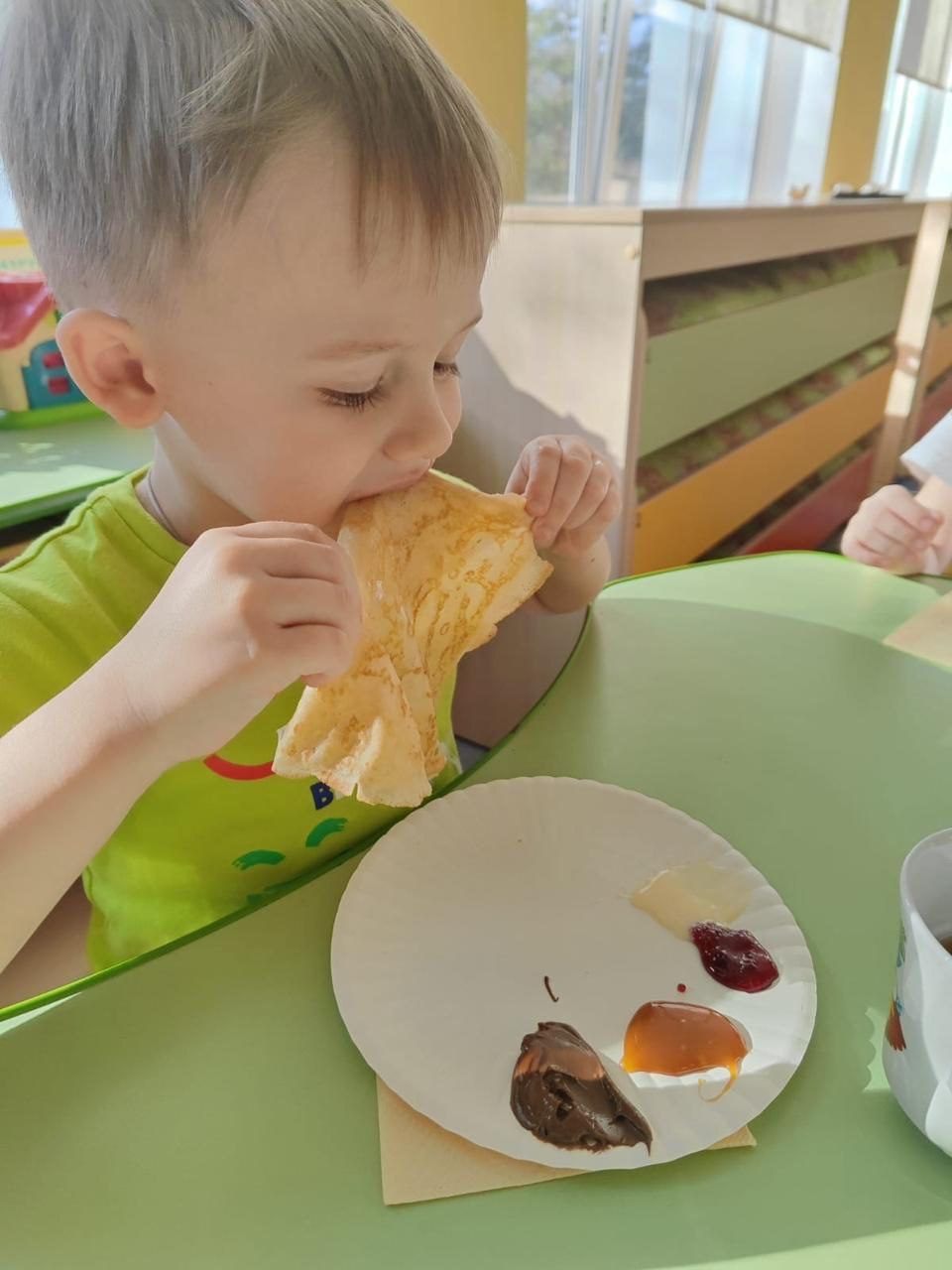 25 февраля в МОУ «Гимназия N 1. Дошкольное отделение №9” праздновали Масленицу. На праздник был приглашён ответственный за взаимодействие с дошкольными образовательными организациями Волоколамского благочиния иерей Димитрий Пищерков. Священник пообщался с детьми о Масленице и подготовке к Великому Посту. Дети пели песни и водили хороводы в которых нашлось место и для отца Димитрия. Батюшка участвовал вместе с детьми в мастер-классе по приготовлению блинов, которые вместе съели за чаепитием.