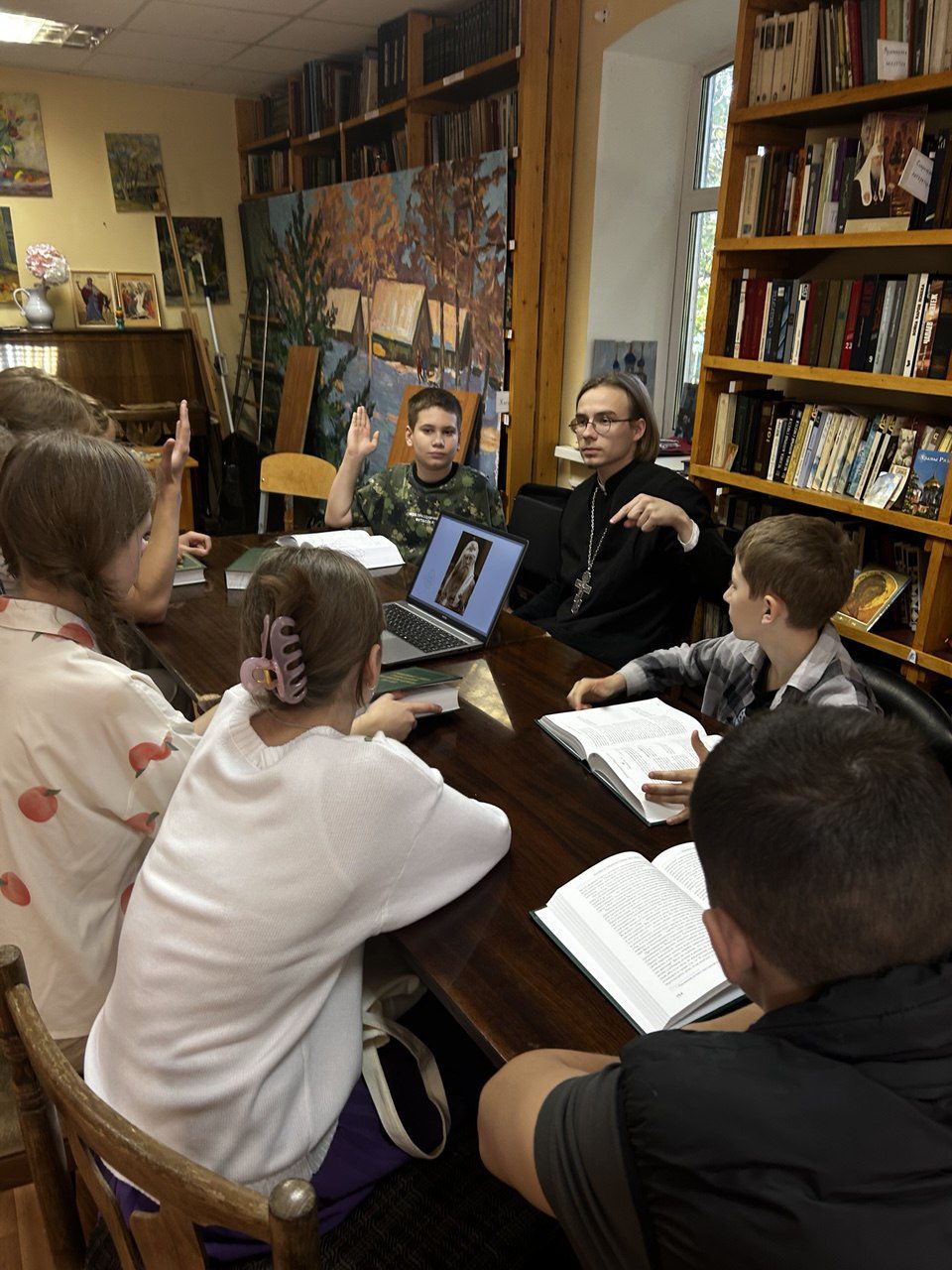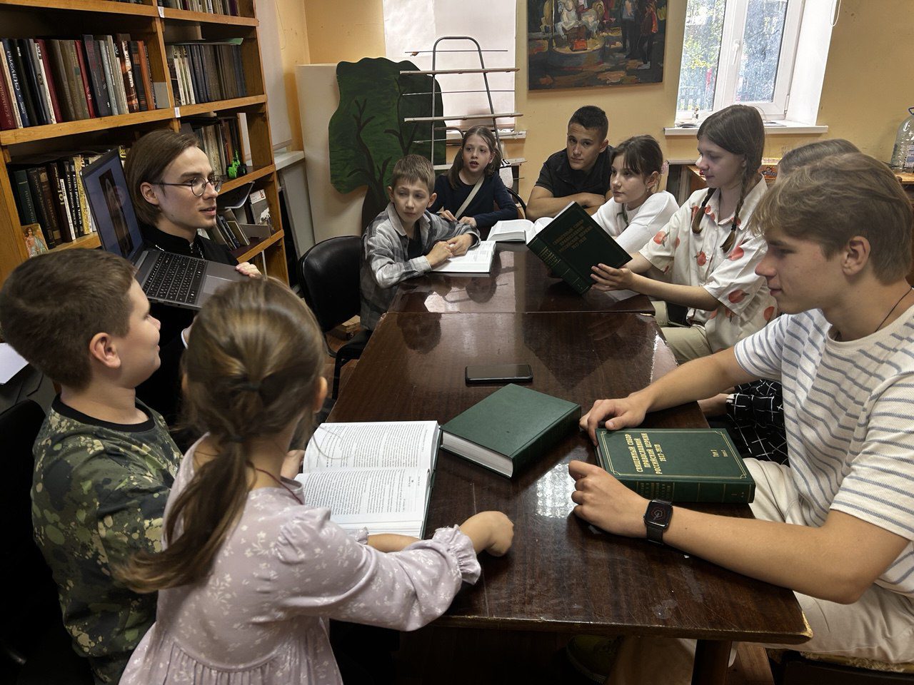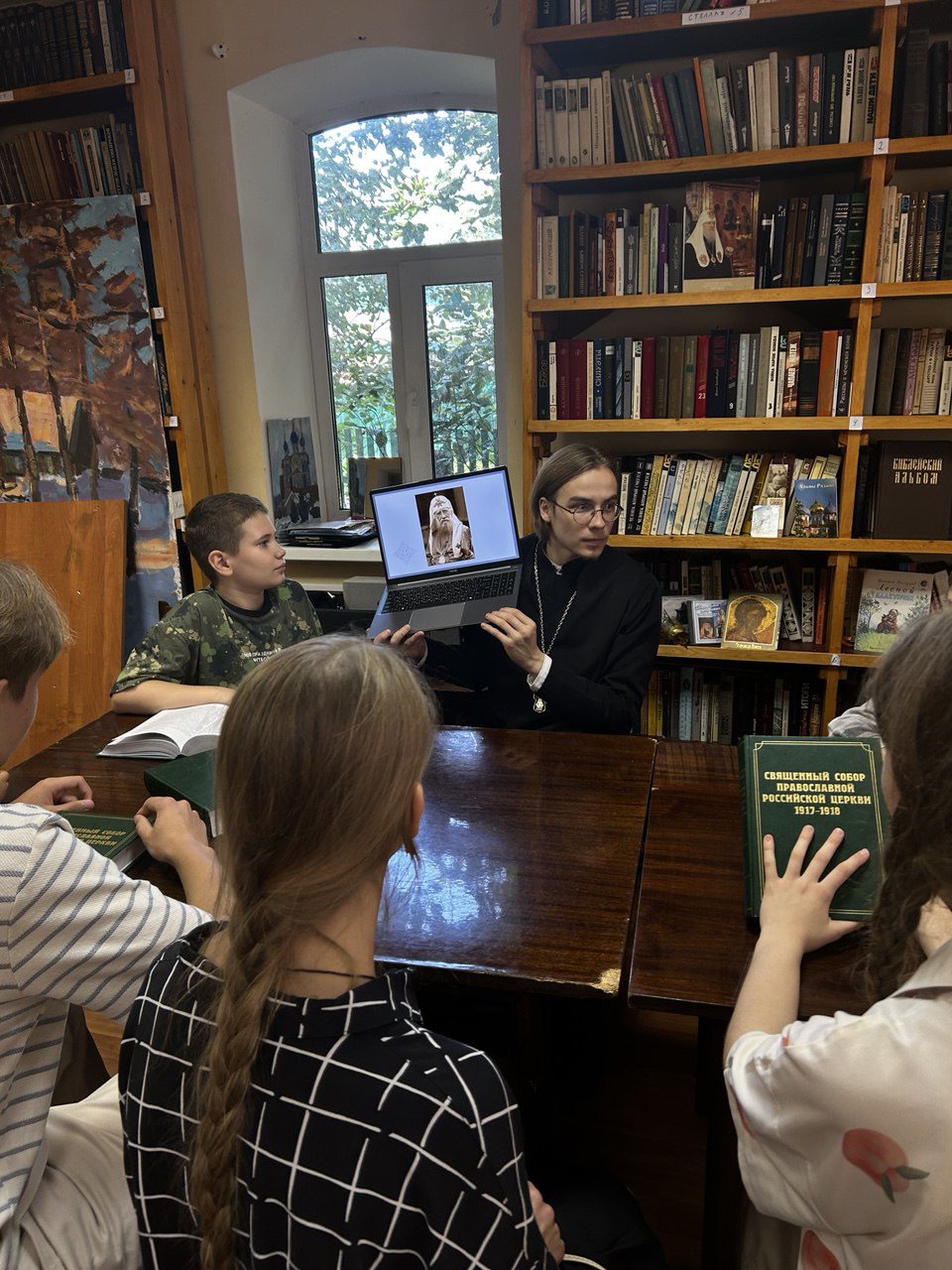 14 сентября, по окончании Божественной Литургии, ответственный по делам молодёжи Звенигородского благочиния священник Вадим Куров провел встречу с молодёжью Звенигородского благочиния совместно с Воскресной школой Христорождественского храма г. Звенигорода, посвященную жизненному пути святителя Патриарха Тихона. В ходе беседы ребята наглядно ознакомились с ключевыми событиями из жития Первосвятителя, рассмотрев исторические фотографии, ознакомившись с сохранившимися документами и с книжным изданием деяний Поместного Собора 1917-1918 гг.