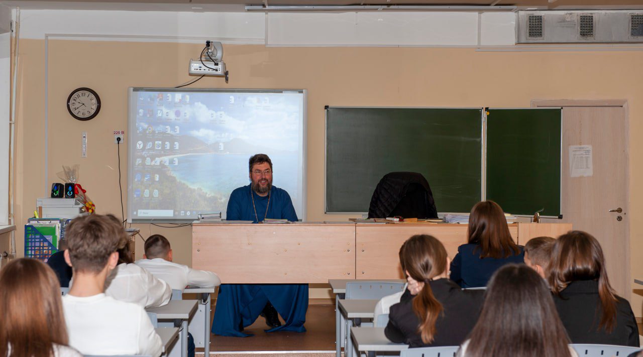 Священник рассказал ученикам о предстоящем светлом празднике Пасхи и ответил на появившиеся в ходе беседы вопросы.