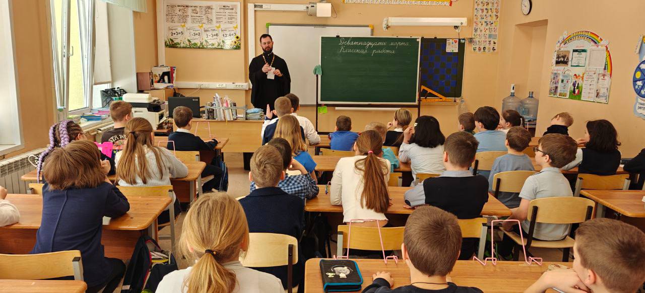 19 марта настоятель Троицкого храма пос. Назарьево священник Александр Карпов провел беседу с учащимися начальных классов Назарьевской СОШ.