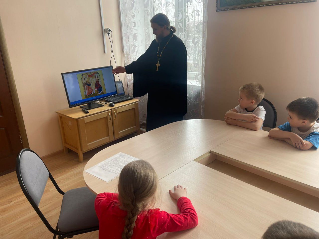 В завершении встречи детям был показан мультфильм о Благовещении Пресвятой Богородицы, созданный Свято-Елисаветинским монастырём.