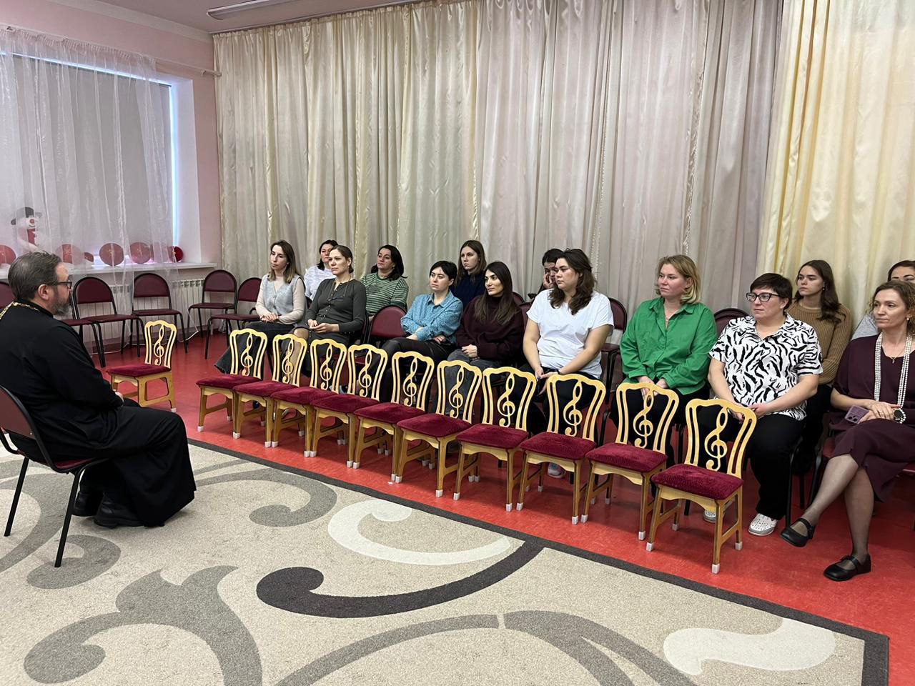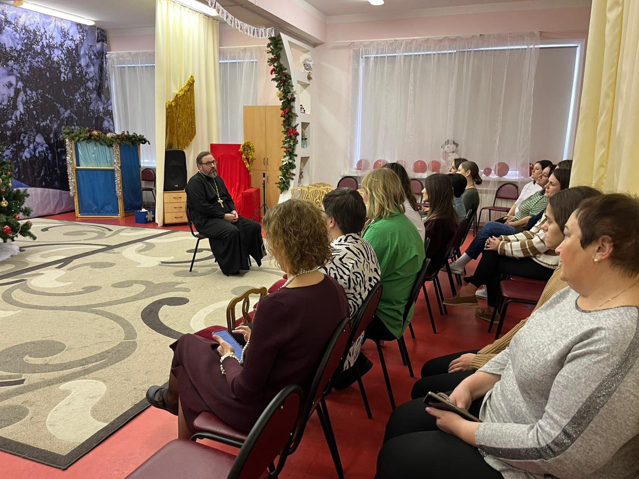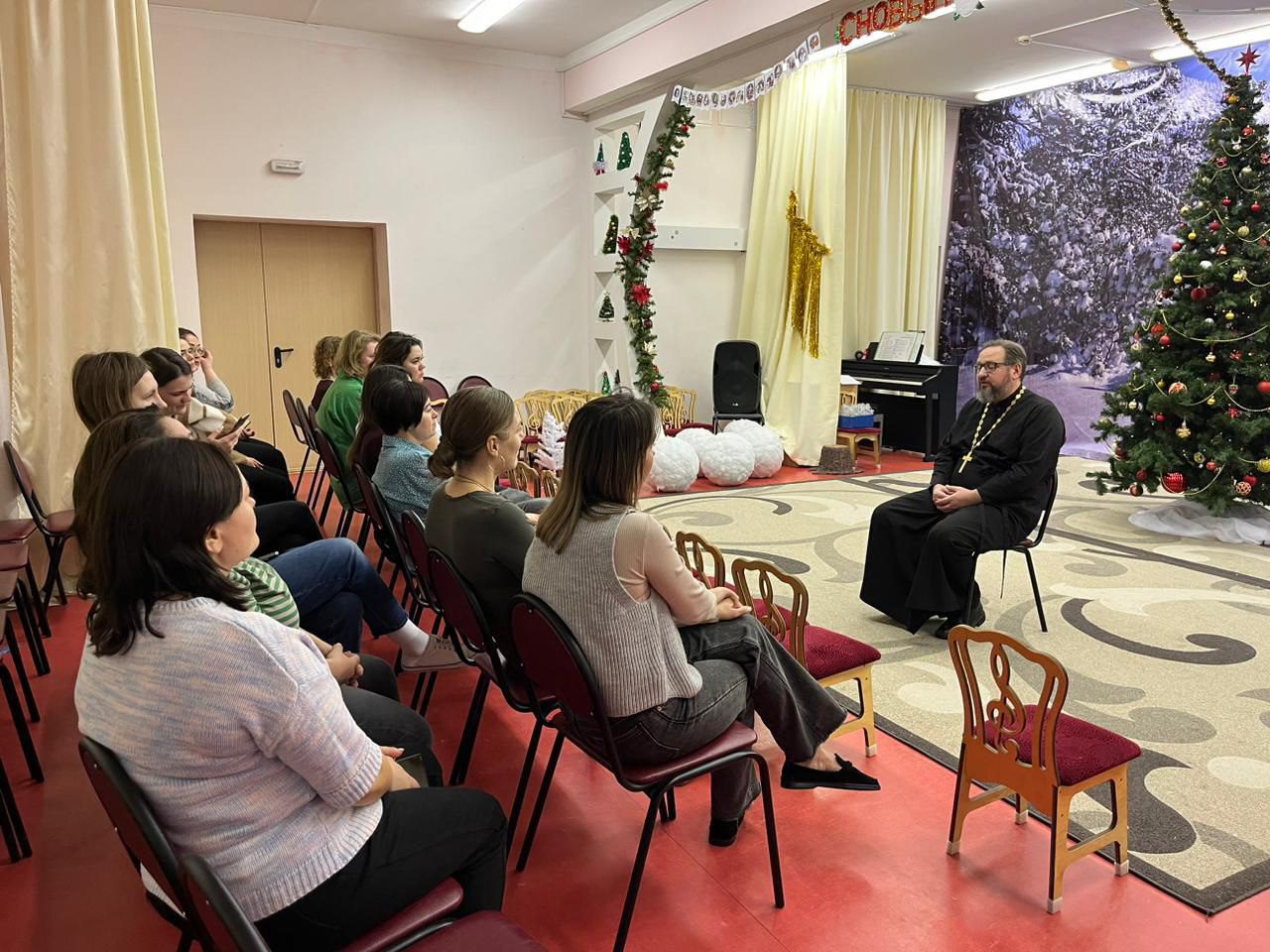 В преддверии Нового года и Рождества Христова настоятель Мироносицкого храма г. Истра посетил детские сады №48 и №21, окормляемые приходом. На встречах присутствовали педагоги и администрация дошкольных учреждений. Священник Павел рассказал о предстоящих праздниках Рождества Христова, особенностях богослужения и традициях.
