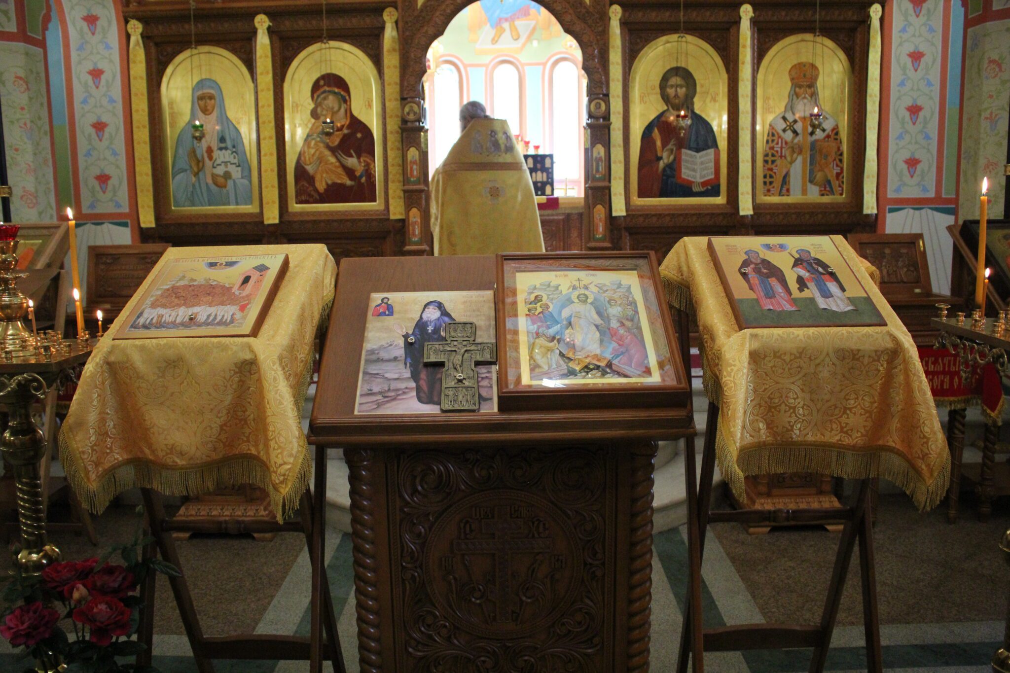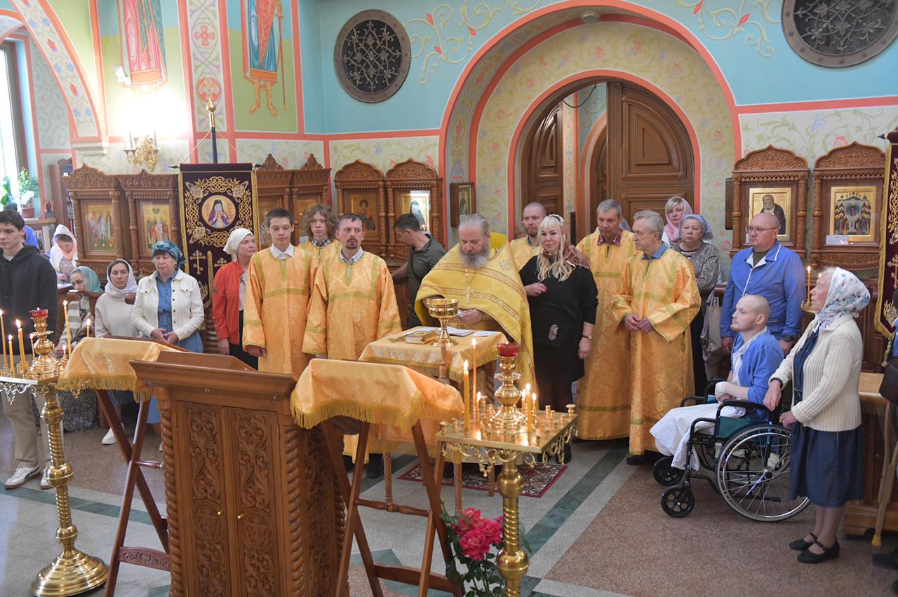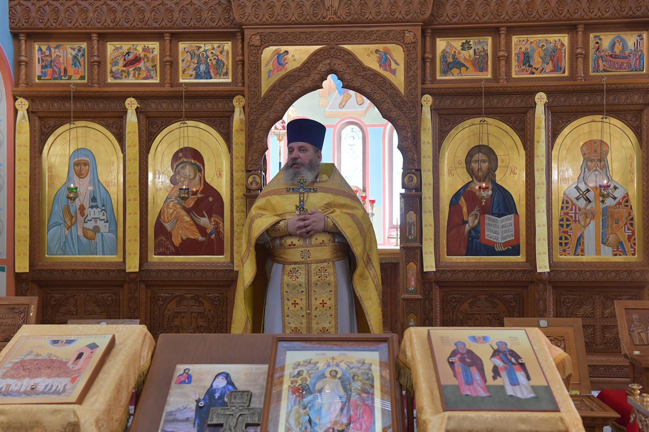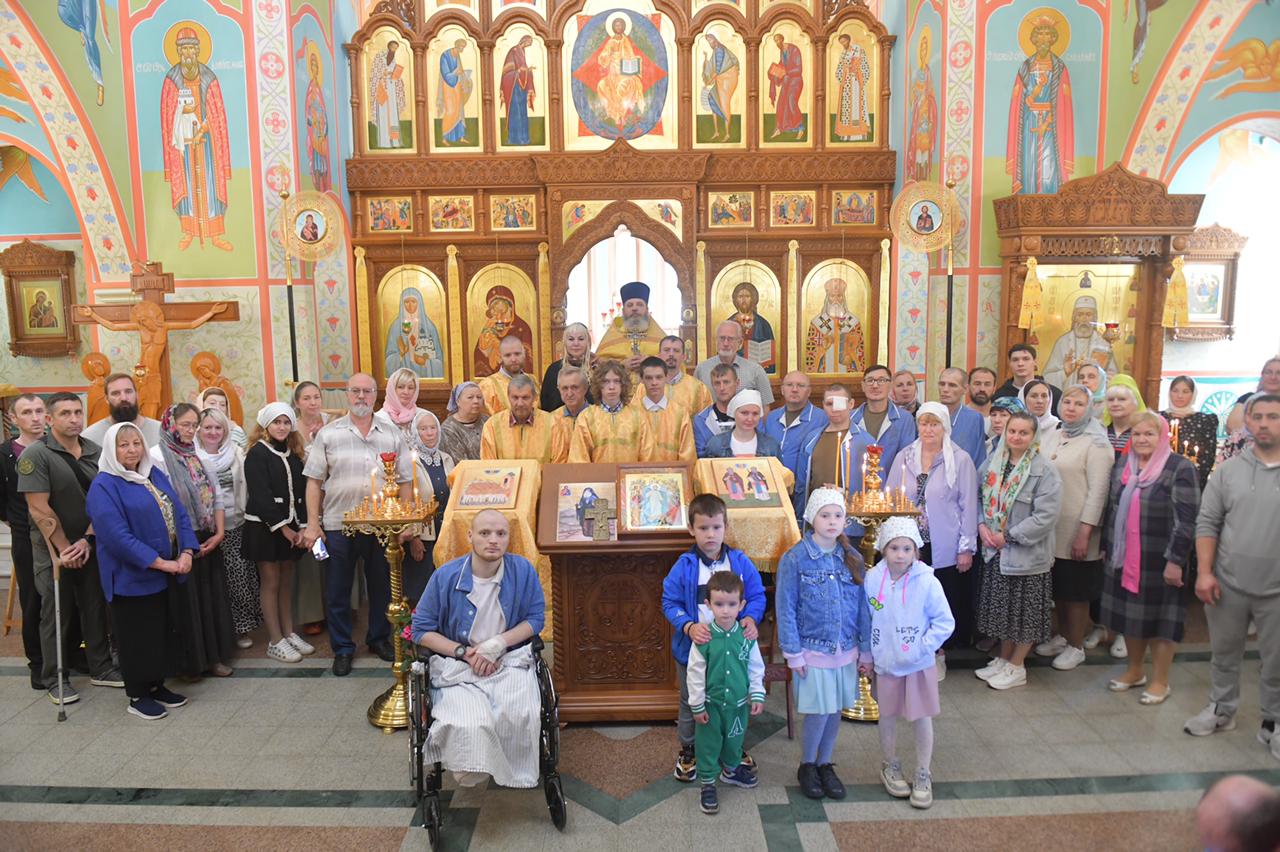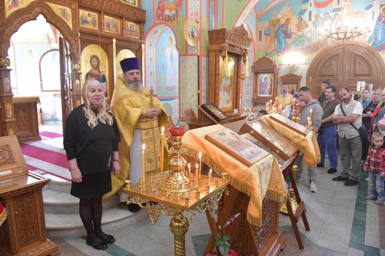 После Божественной литургии Наталья Сергеевна обратилась к прихожанам с приветственным словом, рассказала о работе фонда и о привезенных святынях. Затем был отслужен молебен. Поклониться святыням пришли прихожане и пациенты госпиталя.