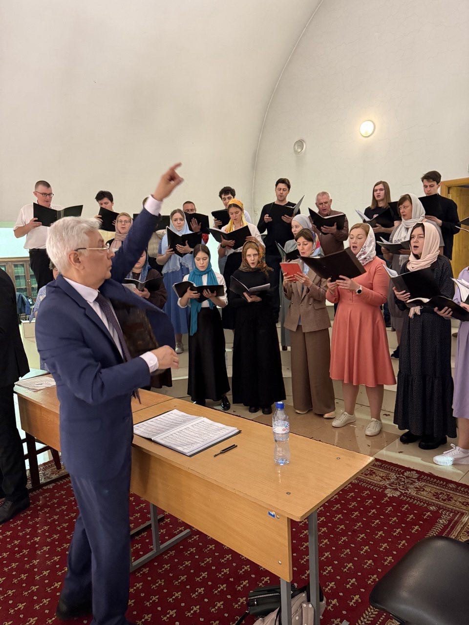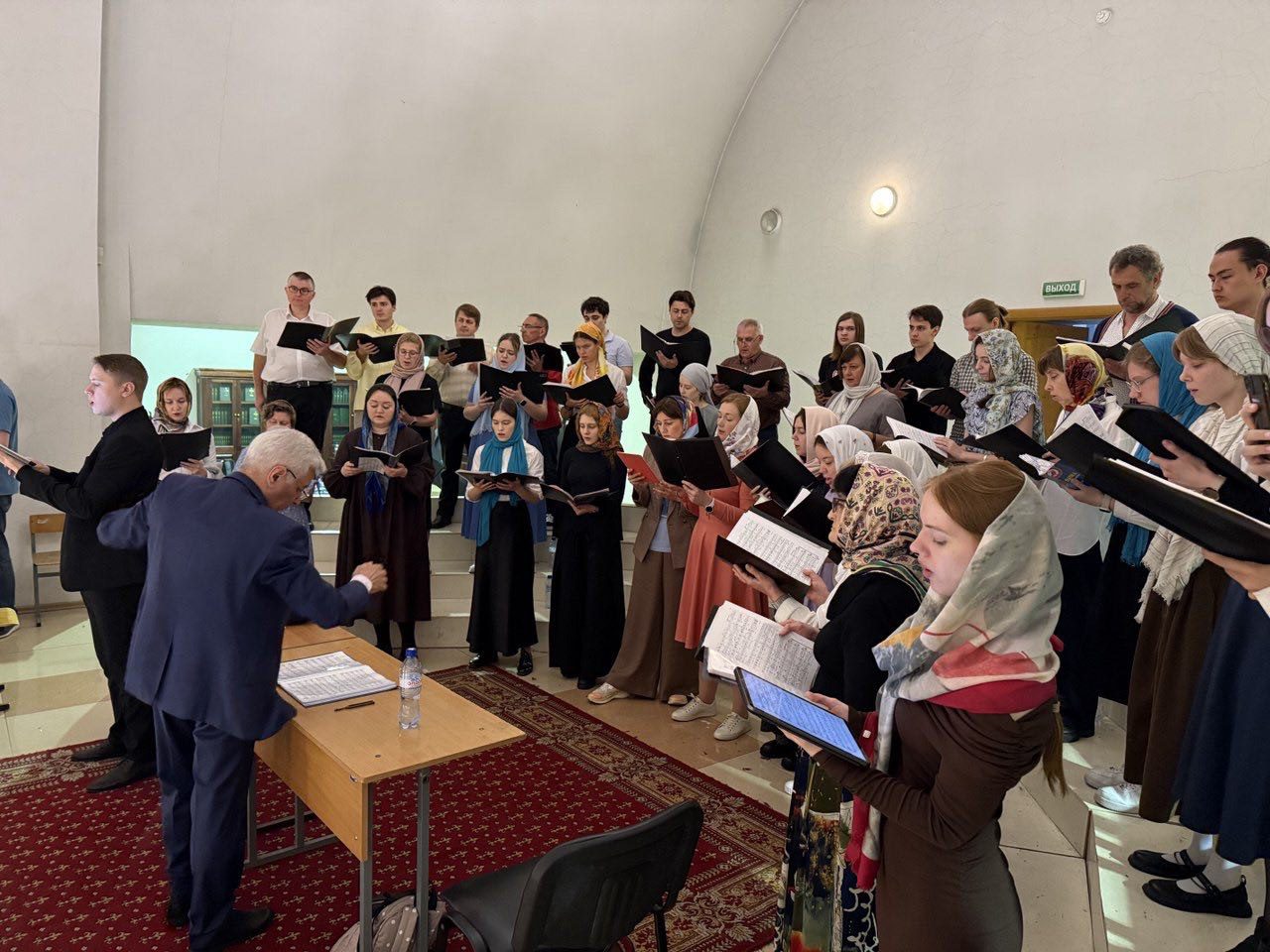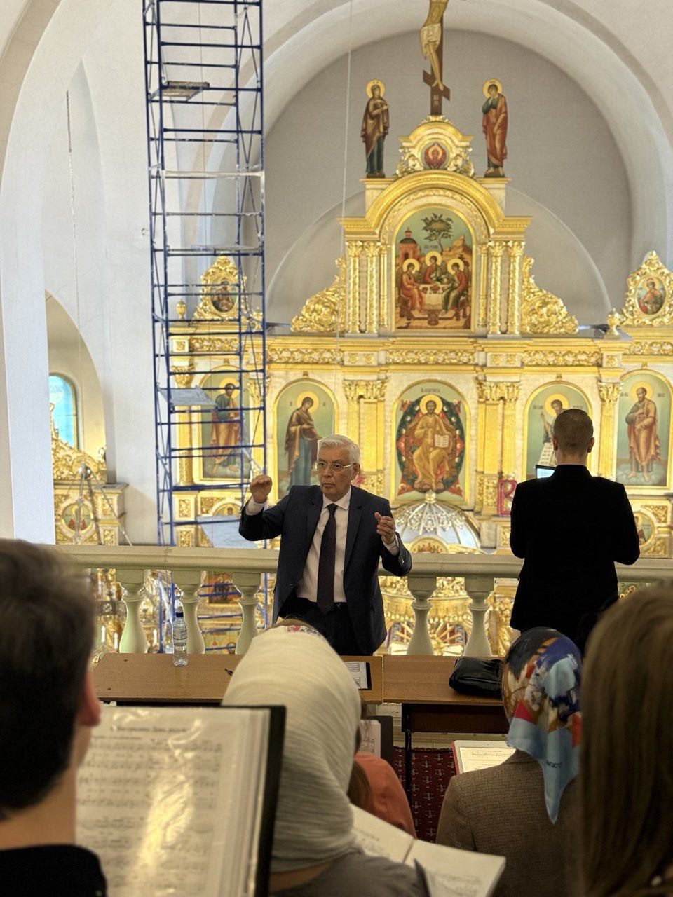 За богослужением песнопения исполнил Академический хор Московского Государственного Университета, художественный руководитель Аскеров Мирза Сафтарович.