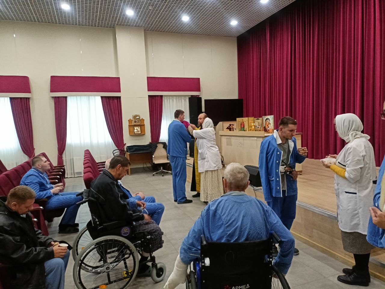 17 октября, священники Михаило-Архангельского храма г. Краснознамеск, посетили 4-й филиал госпиталя имени Вишневского, где проходят лечение военнослужащие, участвующие в специальной военной операции.