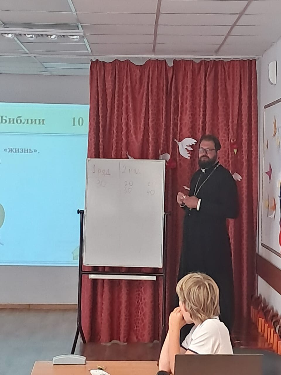 1 августа 2025 года в Комплексном центре социального обслуживания и реабилитации настоятель Михаило-Архангельского храма г. Можайска, священник Сергий Андриянов, провел для посетителей православную викторину на библейскую тему «Умницы и умники».