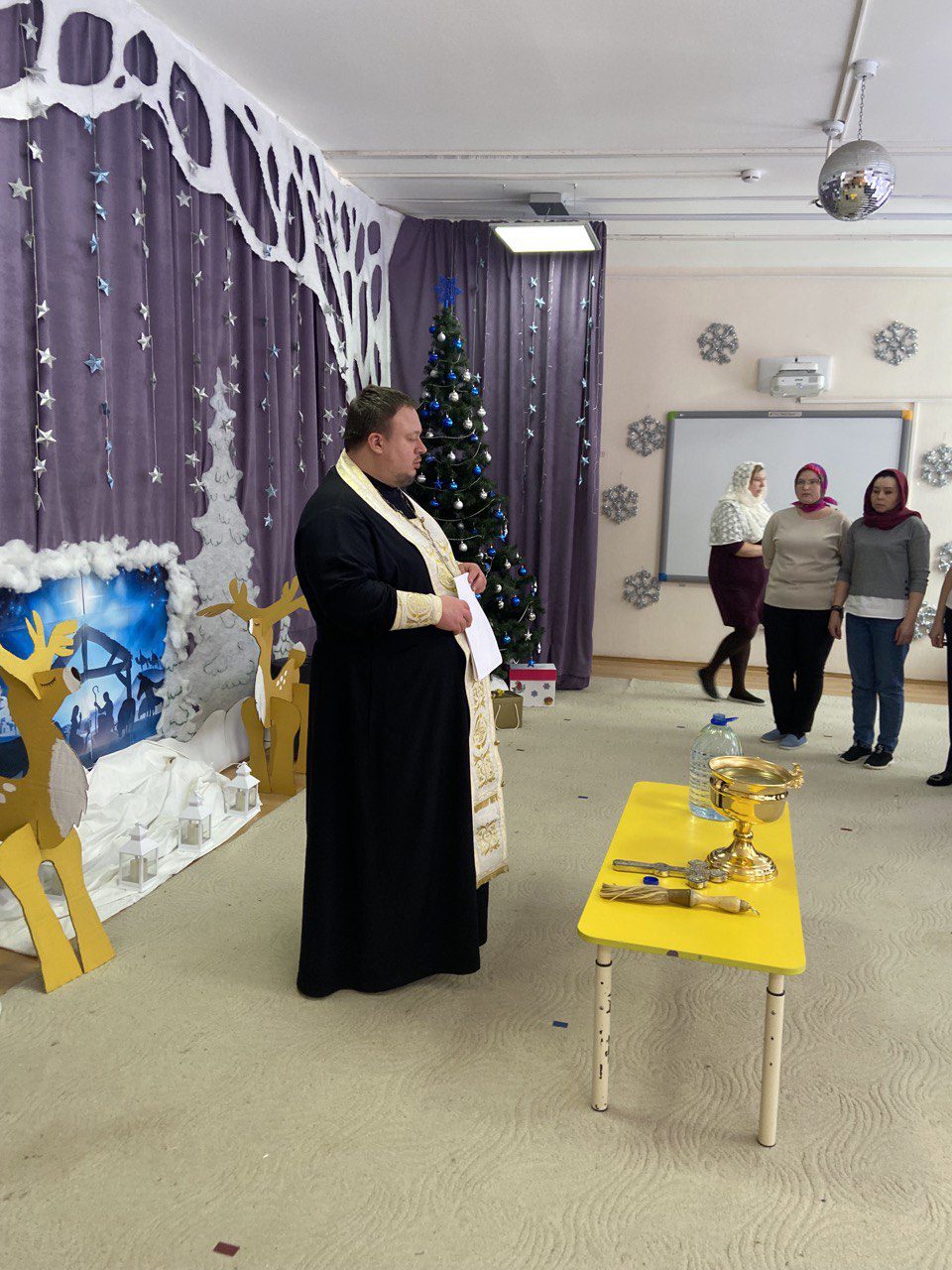 19 января в день праздника Богоявления,  детский сад «Снегирек», по уже сложившейся традиции, посетил , настоятель Серфимовского храма священник Вадим Пименов.