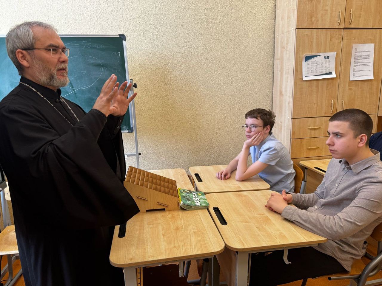 В ходе встречи священник вместе с ребятами поразмышлял о христианском взгляде на человека, о природе добра и зла, о том, что такое любовь, а также о смысле и значении Праздника Воскресения Христова.