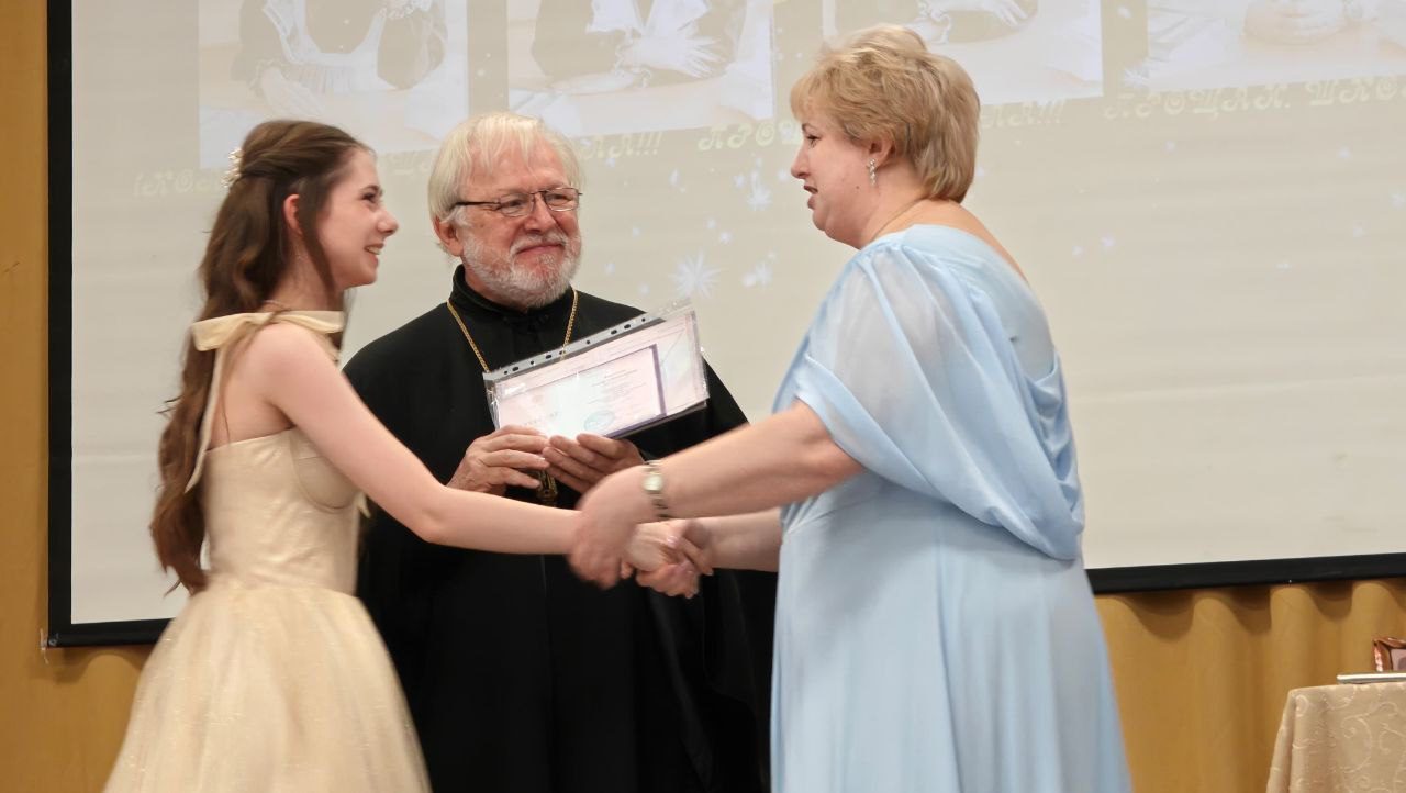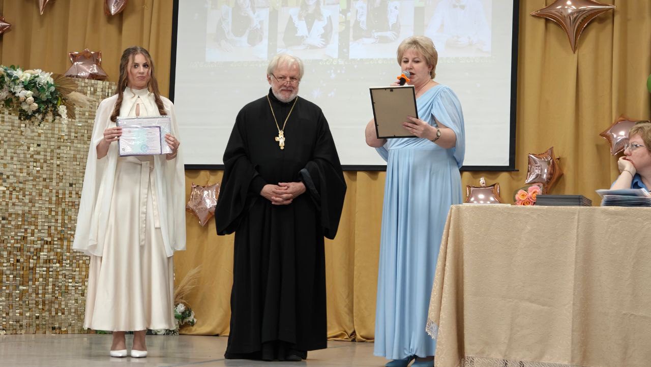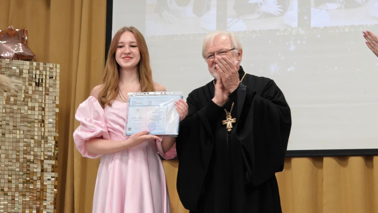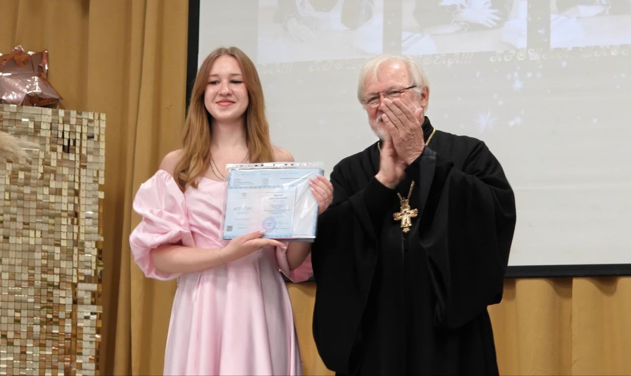 Протоиерей Вадим Владышевский после торжественного вручения аттестатов пожелал всем выпускникам помощи Божией в достижения намеченных в жизни целей и во всяких добрых начинаниях.