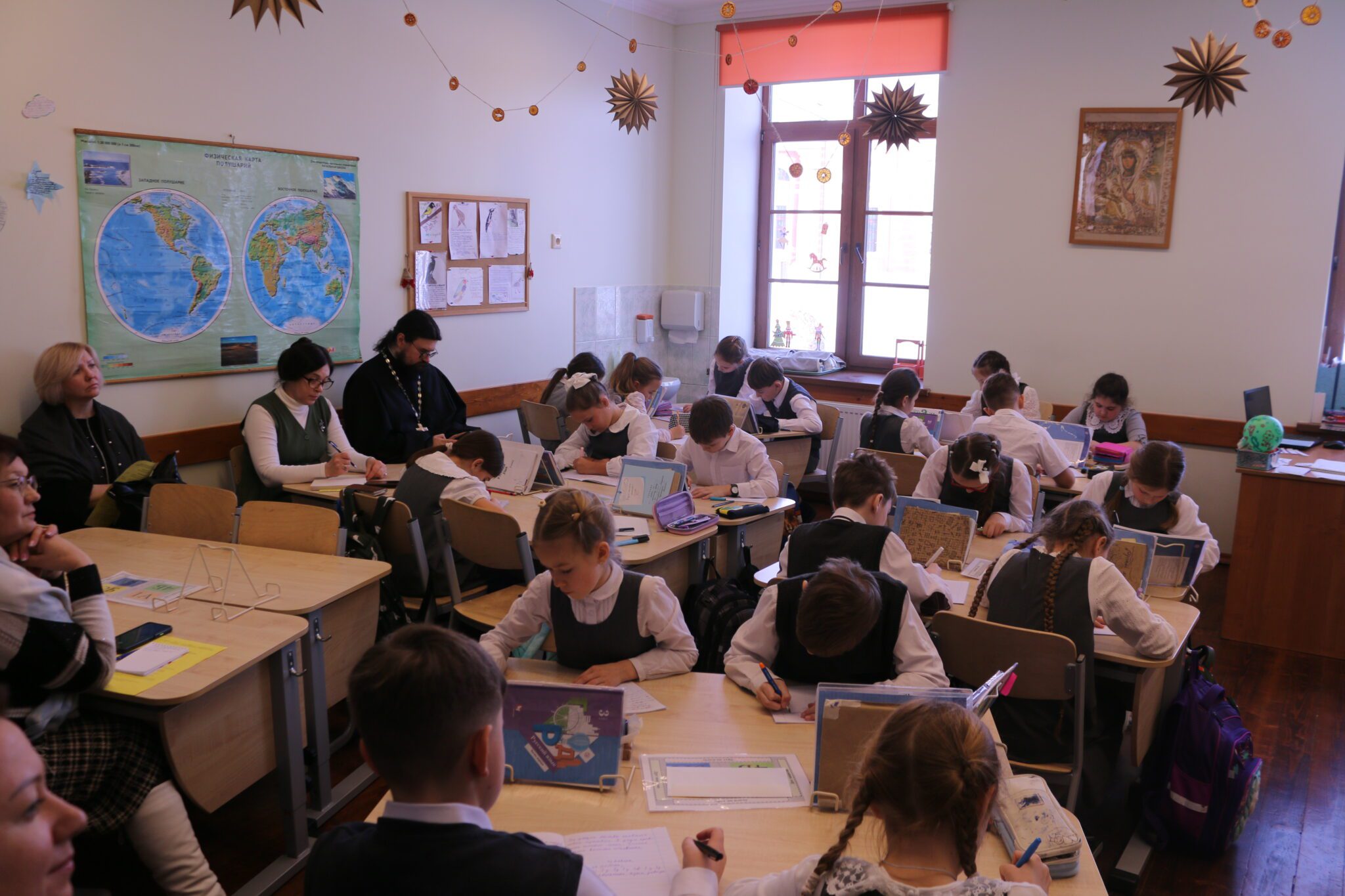 26 января в рамках ХХХIV Международных Рождественских образовательных чтений в Православной школе «Рождество» состоялся семинар на тему «Современная православная школа. Многообразие педагогических практик и работа с детьми, имеющими ограниченные возможности здоровья». Семинар проходил по инициативе заведующего Сектором Православных образовательных организаций СОРОиК протоиерея Димитрия Григорьянца. Руководство и педагоги школы «Рождество» представили коллегам – их было более 80-ти со всех краёв Российской Федерации – свой опыт работы в разных направлениях жизни православного учебного заведения. Программу события открыл молебен в храме Рождества Христова, который служил духовник и директор школы «Рождество» протоиерей Александр Елатомцев, далее состоялся большой семинар, на котором выступили протоиерей Димитрий Григорьянц и протоиерей Александр Елатомцев. Педагогический опыт школы представили исп.директор В.Ф. Шварц, заместители директора Г.Ю. Старчикова, С.Ю. Мамаев, Н.П. Фролова. Далее гости посетили 8 открытых уроков и совершили экскурсию по школе. Встреча закончилась обедом в школьной трапезной.