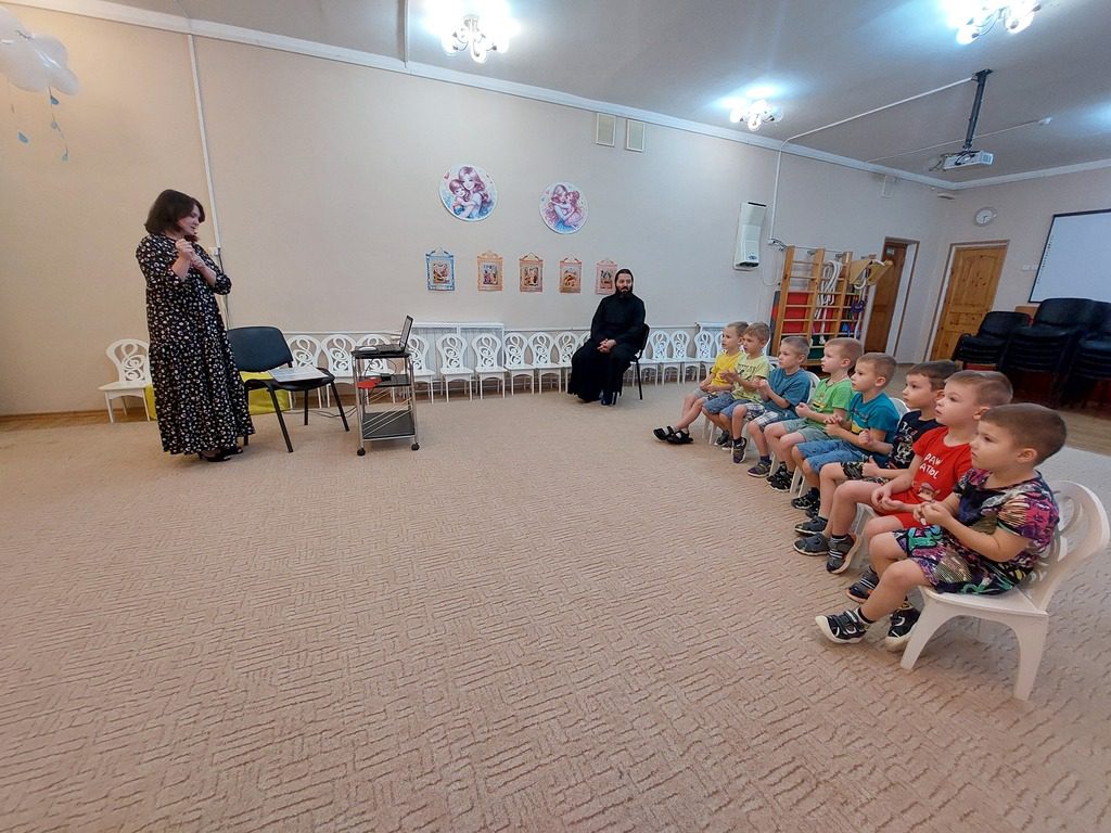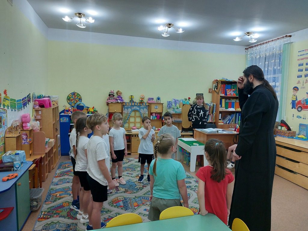 После занятия отец Александр побеседовал с воспитанниками старших и подготовительных групп о том, как нужно почитать образ Богородицы, подчеркнул, что мы всегда можем обратиться к Божией Матери с молитвой о защите. Батюшка рассказал детям о том, что когда мы носим нательный крест, значит – веруем в Господа нашего Иисуса Христа. Кроме того, нательный крестик защищает нас от всякого зла, уберегает от плохих мыслей и помогает не сбиться с пути, поэтому его важно носить постоянно у самого сердца. А если станет страшно, то можно перекреститься, сказать, обращаясь к Богу: «Спаси и сохрани» и поцеловать крестик. Когда мы крестимся, то показываем, что любим Бога и просим Его благословить и защитить нас, помочь в добрых делах.
