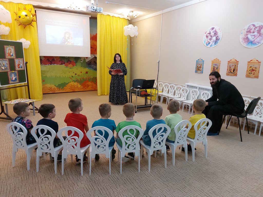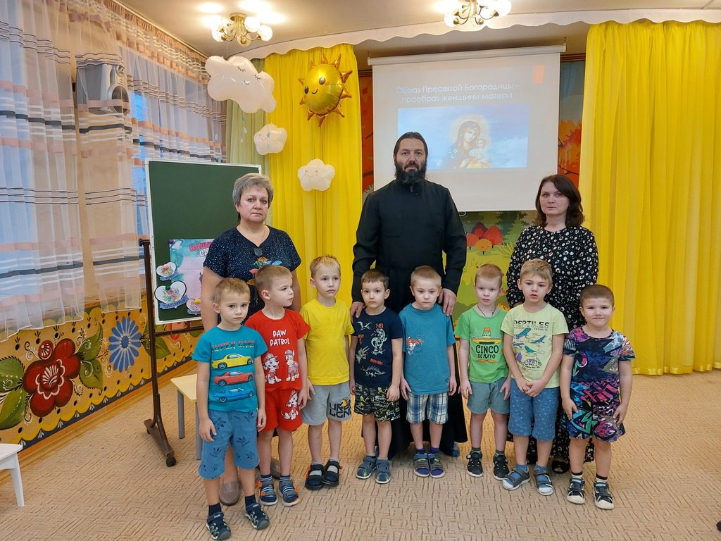 27 ноября в дошкольном отделении N32 МОУ “Глебовская СОШ” прошло занятие с детьми по духовно-нравственному воспитанию «Образ пресвятой Богородицы – прообраз женщины матери». На занятии присутствовал настоятель Казанского храма села Глебово протоиерей Александр Чепрасов.