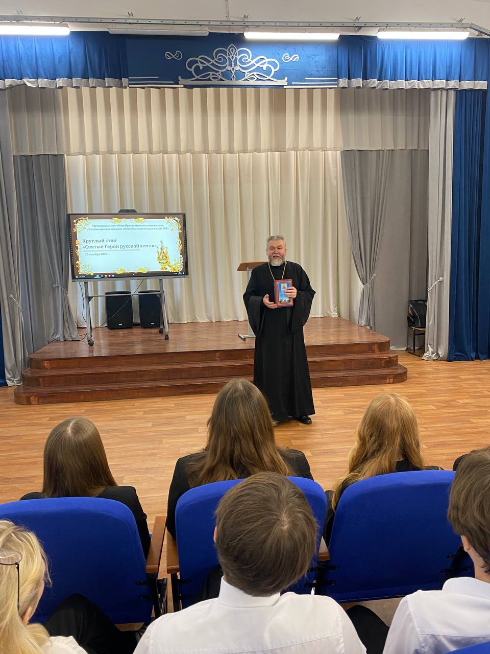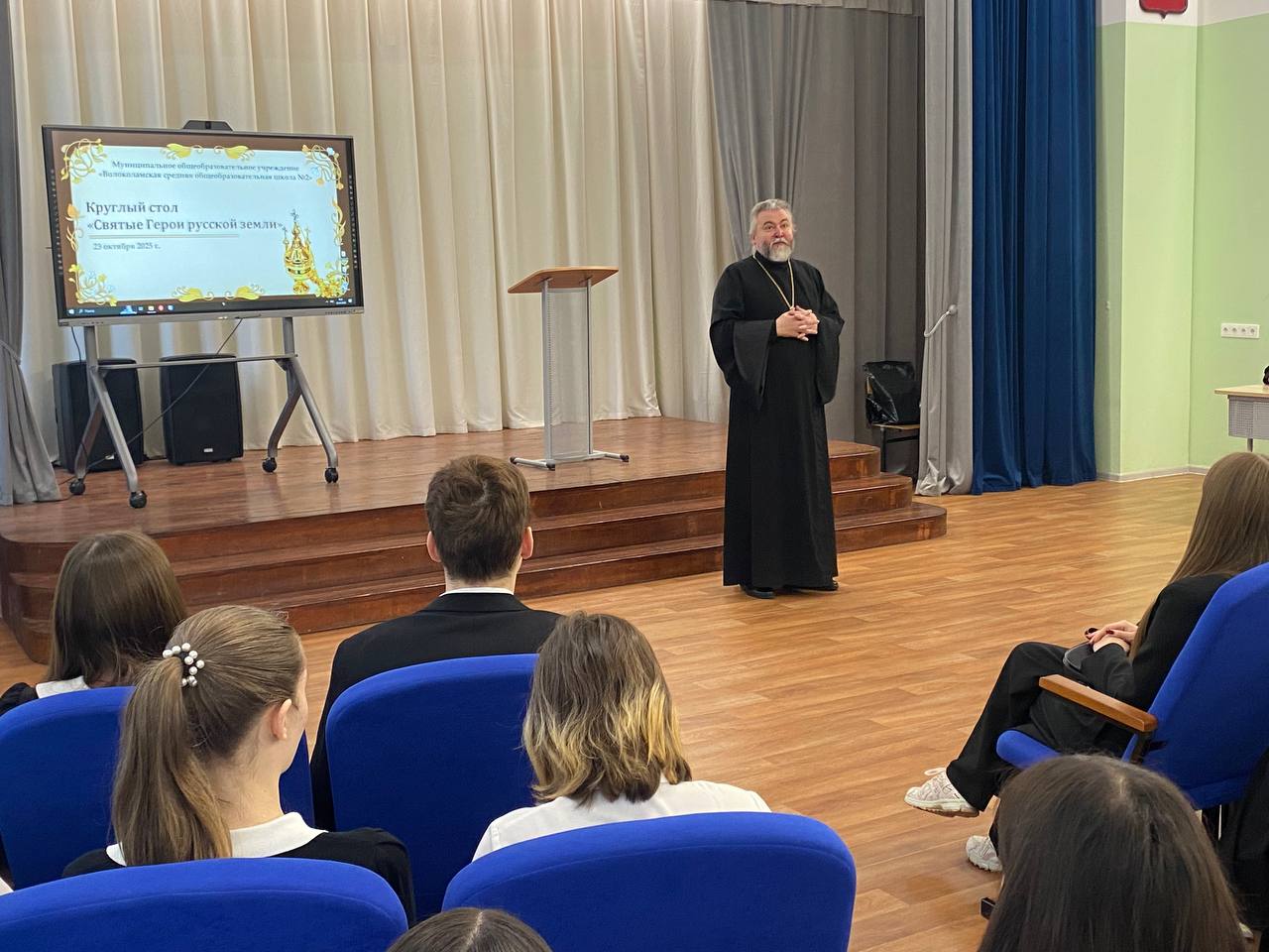 23 октября в окормляемом приходом Введенского храма с. Спирово учебном заведении МОУ СОШ 2 г.Волоколамска, прошла конференция в форме круглого стола на тему: «Святые герои русской земли». Приветственное слово произнес протоиерей Константин Попов, открывший данное мероприятие.