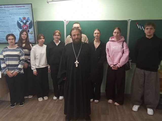 28 октября настоятель Никольского храма в д. Матренино иерей Димитрий Пищерков провёл встречи с учениками 5, 8, 10 классов МОУ “Сычевская средняя общеобразовательная школа”.