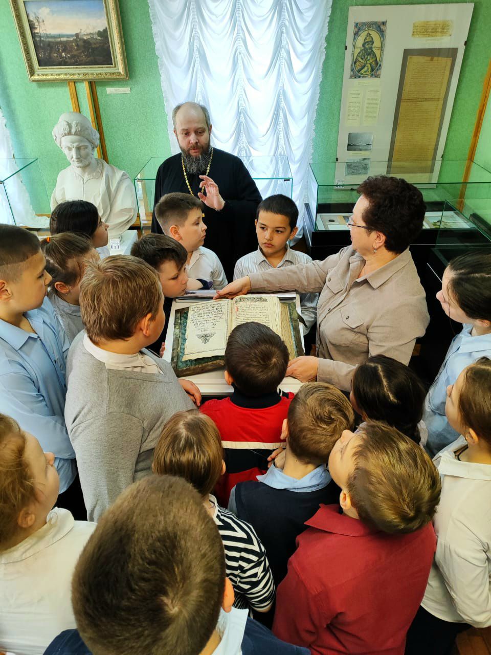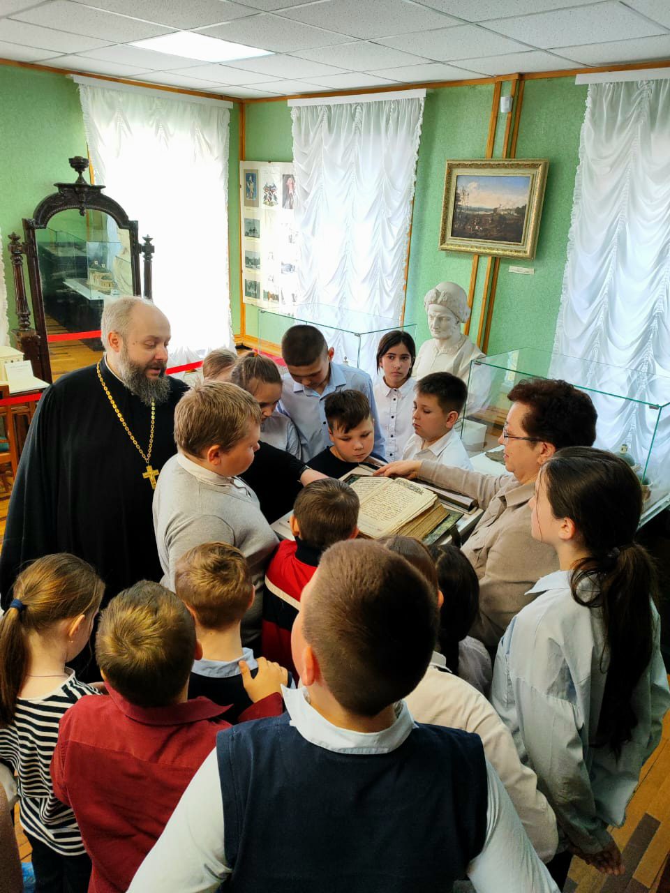 Накануне Дня православной книги ученики Ярополецкой школы и педагогог Татьяна Владимировна Семёнова встретились с настоятелем Казанского храма священником Михаилом Завитаевым. Площадкой для мероприятия стал Народный музей в Яропольце.