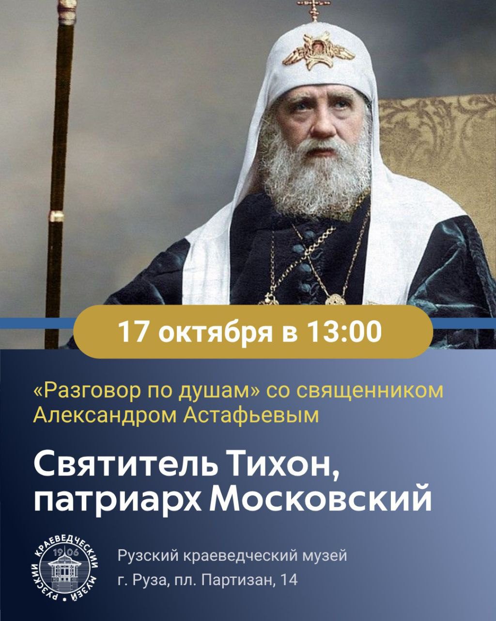 17 октября 2025 года в Рузском краеведческом музее прошла очередная традиционная встреча проекта “Разговор по душам”, посвящённая подвигу святителя Тихона, патриарха Московского и всея Руси. Священник Александр Астафьев рассказал о важнейших деяниях святителя в тяжелейшие времена для Русской Православной Церкви.
