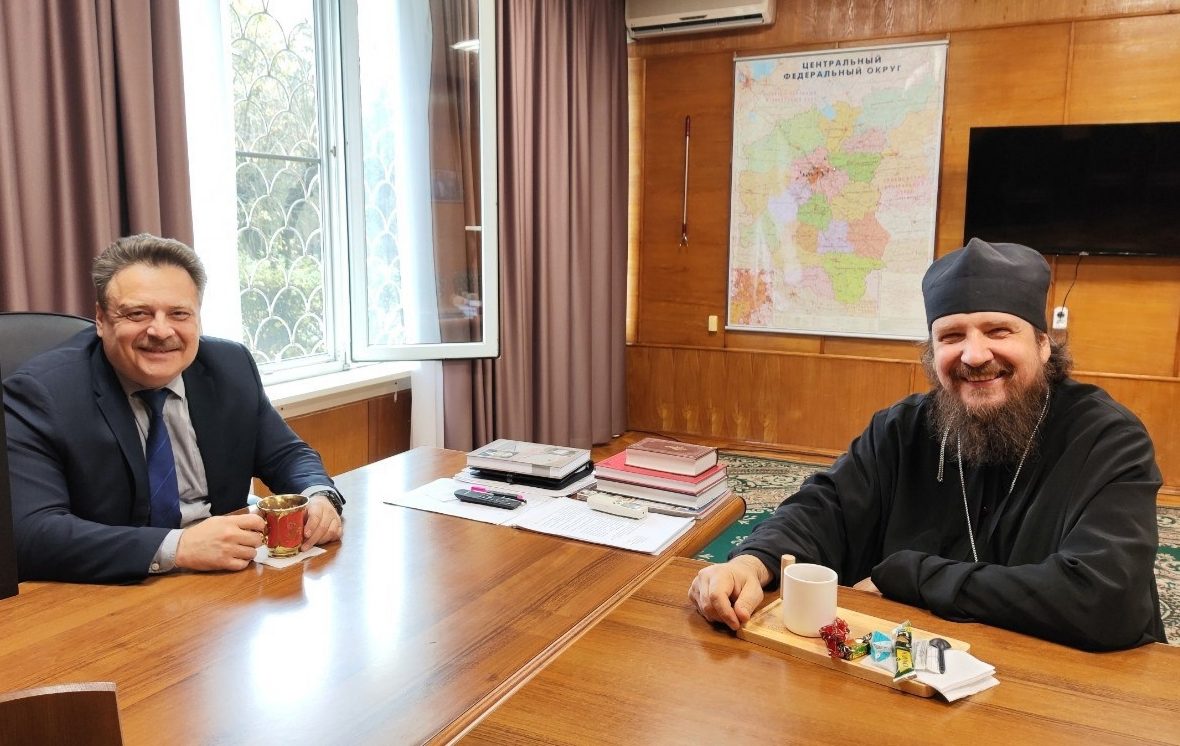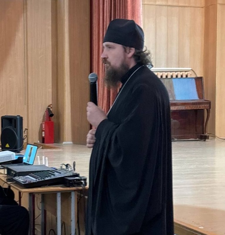 Перед мероприятием отец Александр встретился с директором Колледжа Павлом Владимировичем Клачковым и обсудил возможность сделать беседы о великих христианских праздниках регулярными.