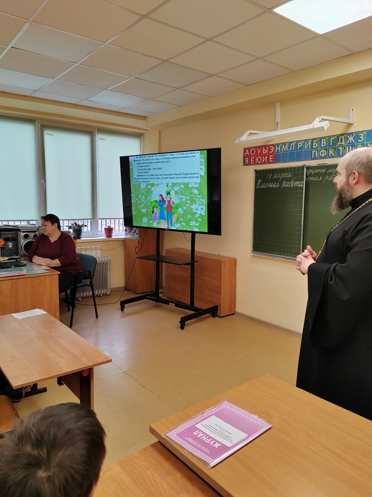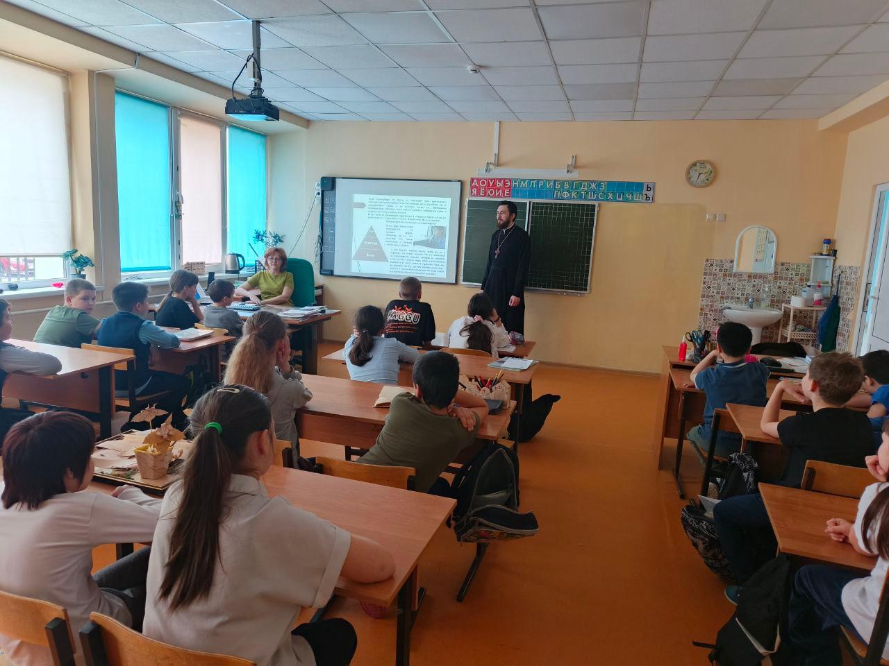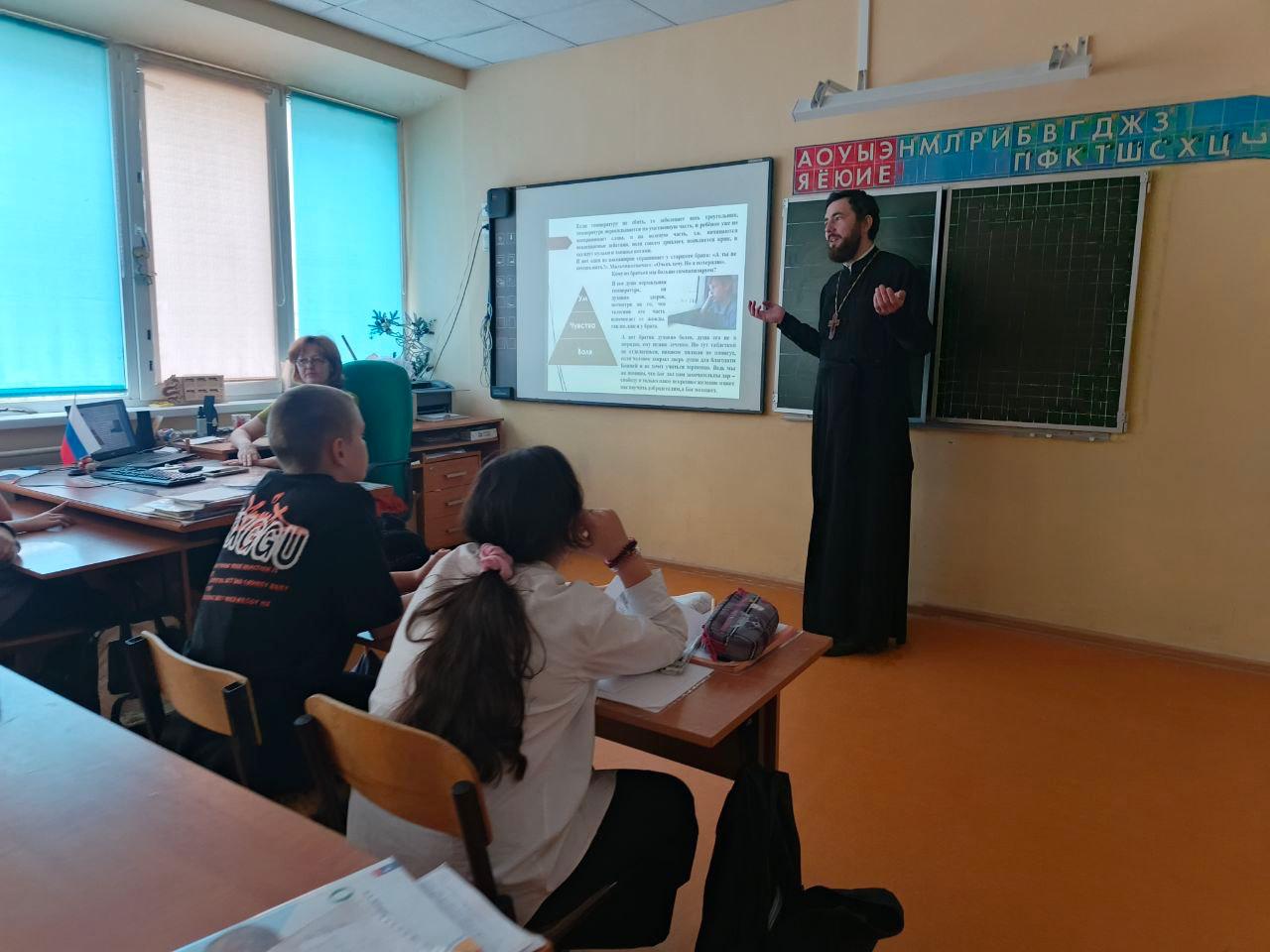 19 марта в Волоколамской школе-интернат прошла встреча со священниками. К ребятам пришел священник Михаил Завитаев, настоятель Казанского и Иоанно-Предтеченского храма с. Ярополец с темой беседы “Ценность – Родина” и священник Борис Зинин, настоятеля храма благоверного князя Олега Брянского с. Осташёво с темой беседы “Нравственная норма – Терпение”.