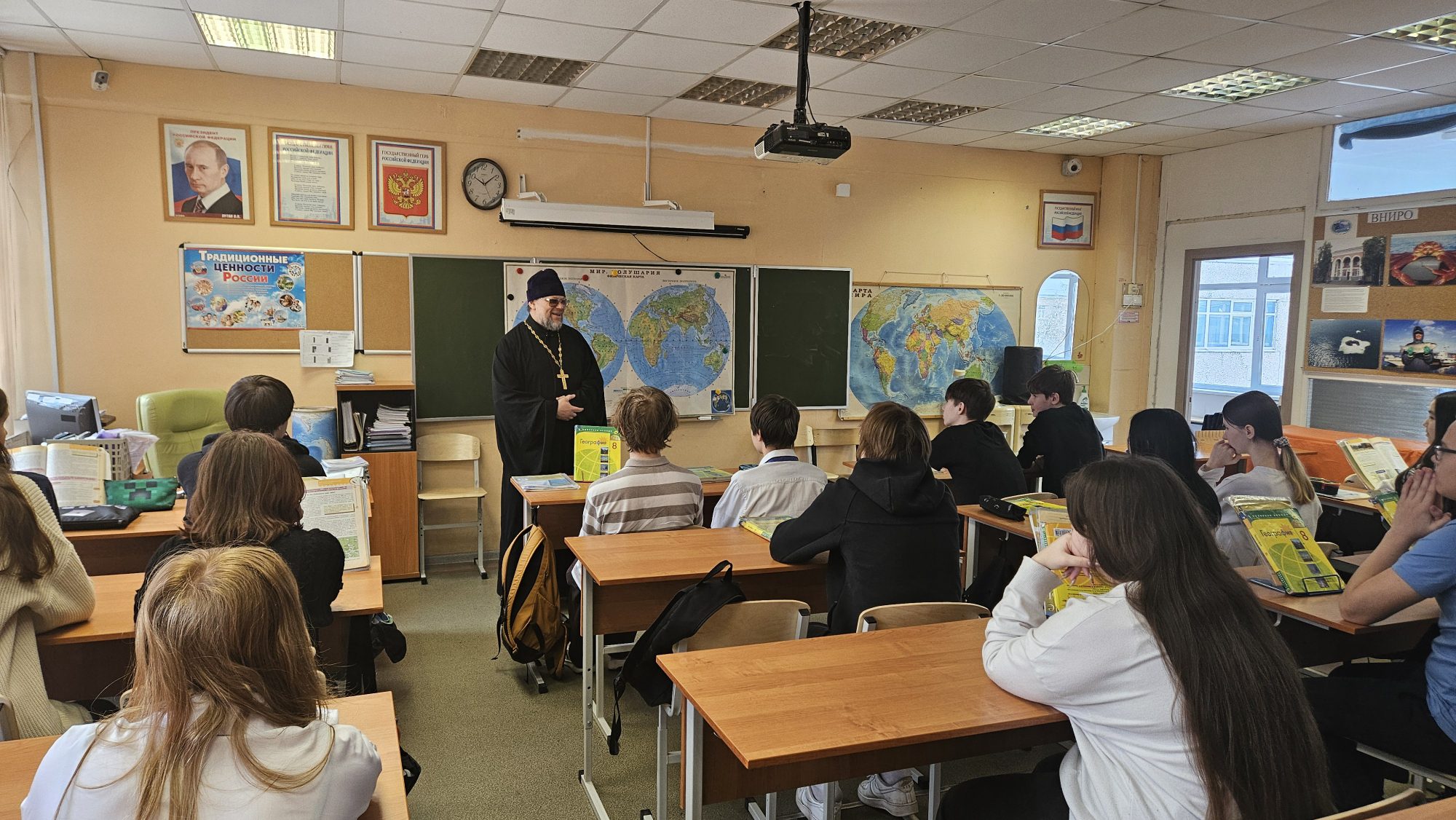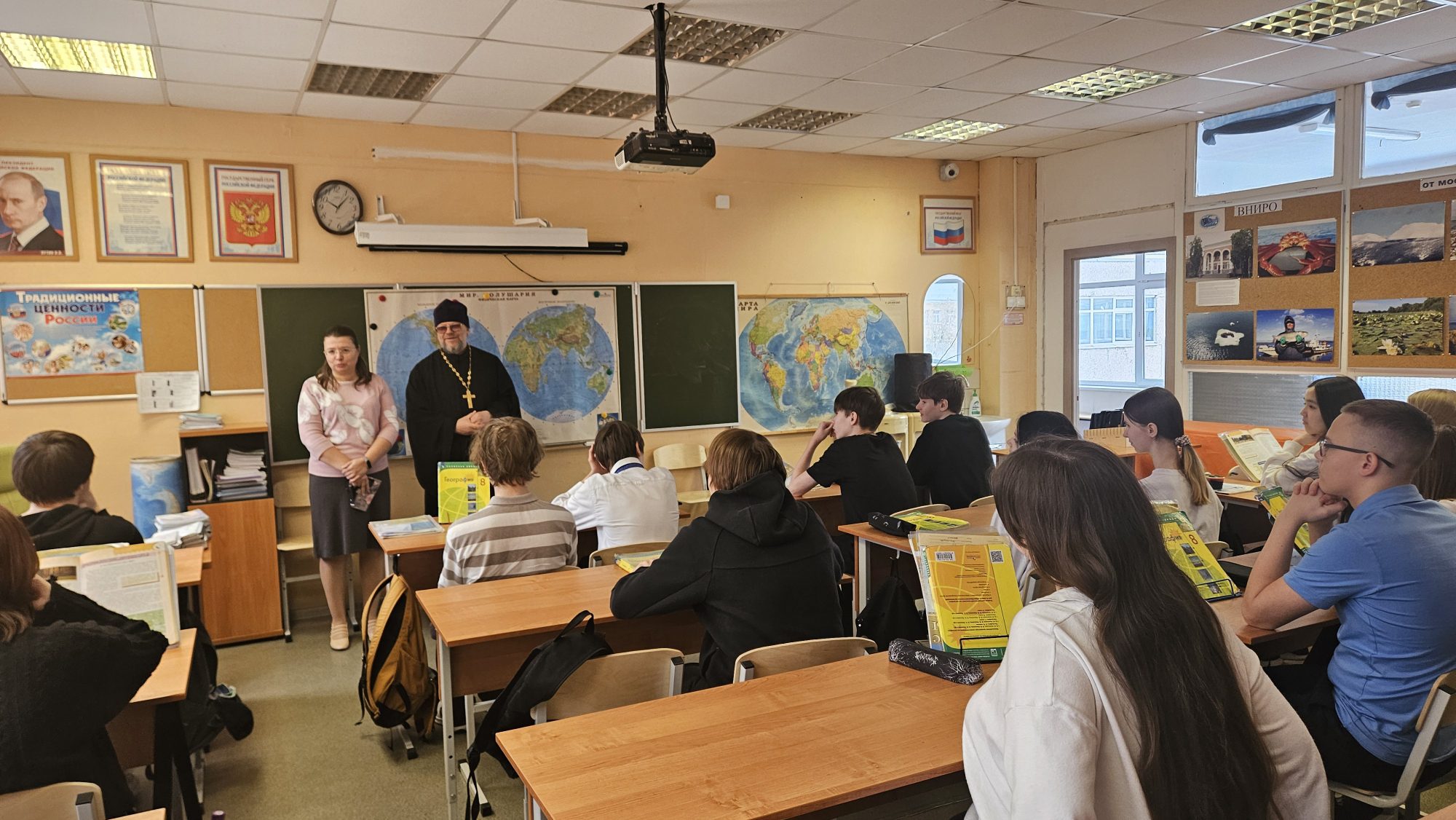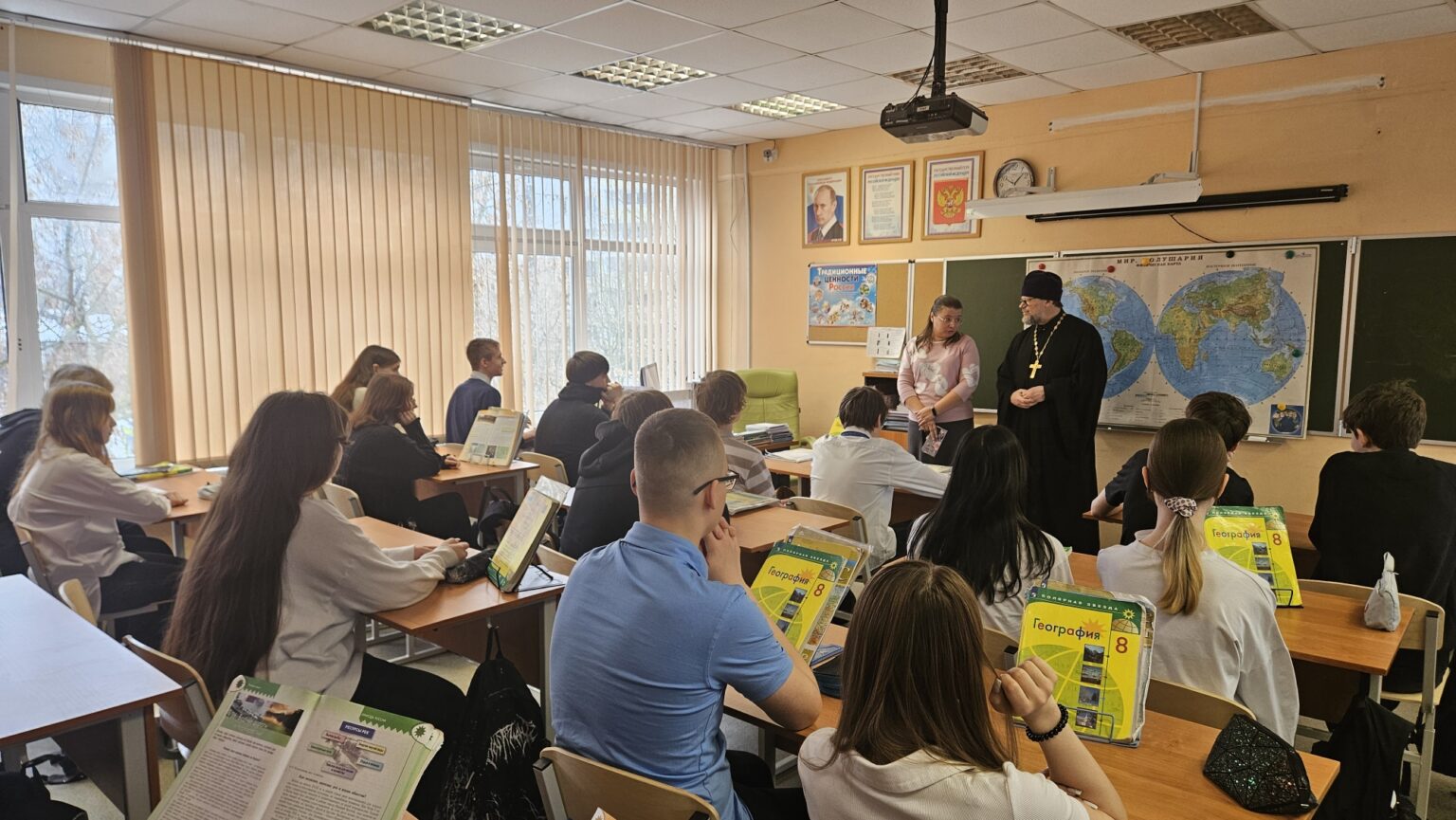 3 марта клирик Знаменского храма г. Красногорска священник Сергий Генченков побеседовал с учениками 8 Б класса в Гимназии №7 г. Красногорска им. Д.П. Яковлева. Встреча была посвящена глубокому разбору молитвы Господней “Отче наш”. Школьники проявили живой интерес и откликнулись своими разнообразными вопросами, на который иерей Сергий с радостью ответил.