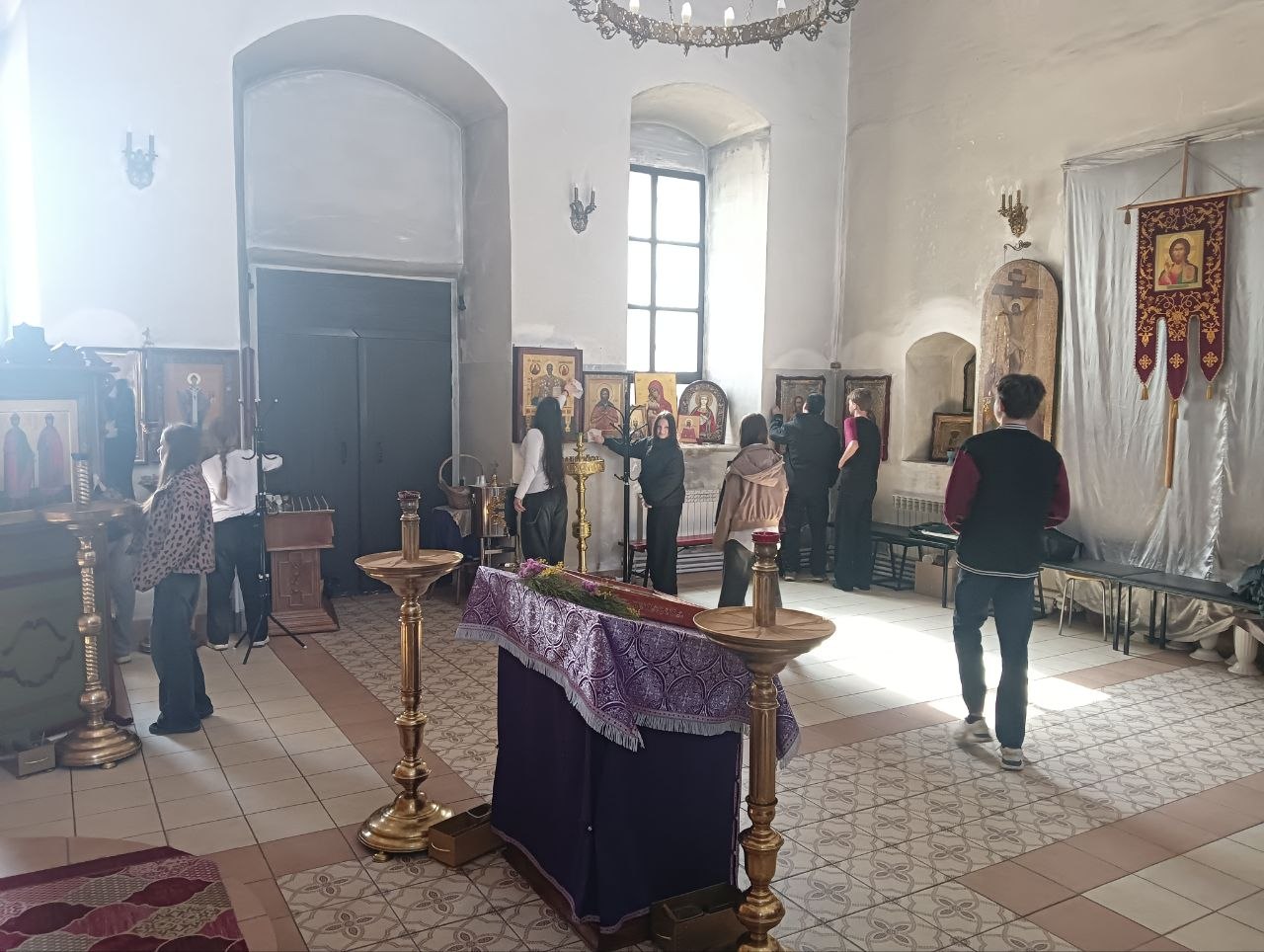 Отец Сергий провел для подростков подробную экскурсию по храму. Ребята узнали об устройстве православной церкви, символике фресок и иконостаса, а также о значении богослужений. Особое внимание священник уделил смыслу Великого поста — времени духовного очищения, покаяния и подготовки к главному христианскому торжеству – Пасхе!