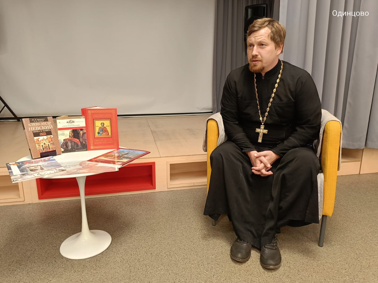 17 сентября в библиотеке № 1 г. Одинцово состоялась встреча учащихся Русской классической школы с ответственным в Одинцовском благочинии за религиозное образование и катехизацию священником Никитой Силиным. В ходе встречи ребята узнали о жизни святого благоверного князя Александра Невского, его мудрой политике в отношении других князей и Золотой Орды, жертвенном служении, военных подвигах против крестоносцев, непримиримой позиции в отстаивании православной веры, национальных традиций и обычаев, значении его деятельности для дальнейшего развития русского государства.