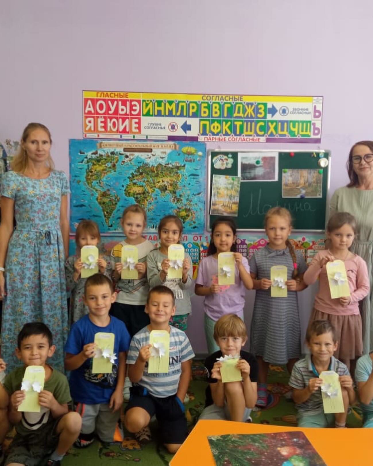 На творческой части занятия ребята изготовили символическую поздравительную открытку с белоснежной лилией.