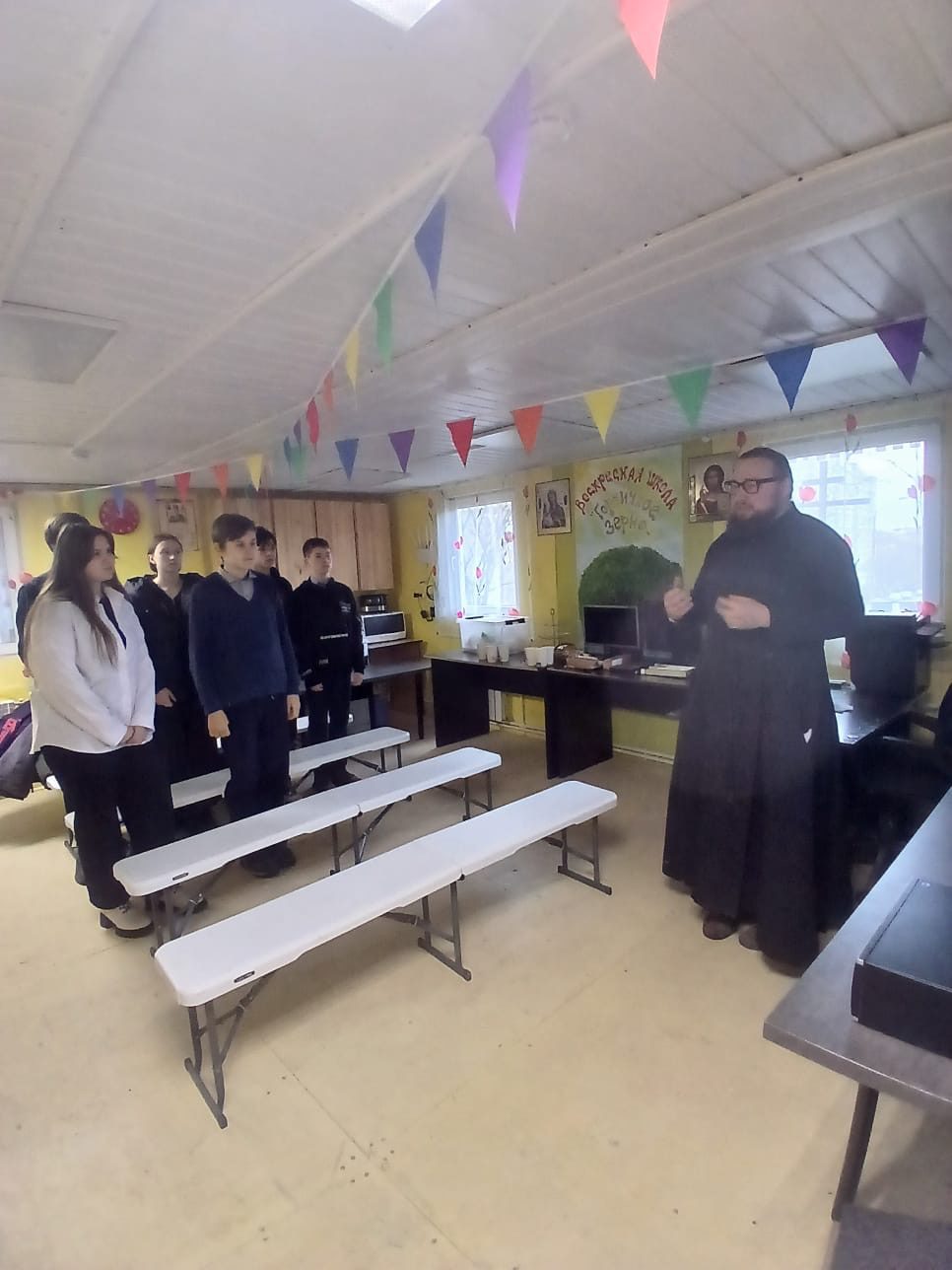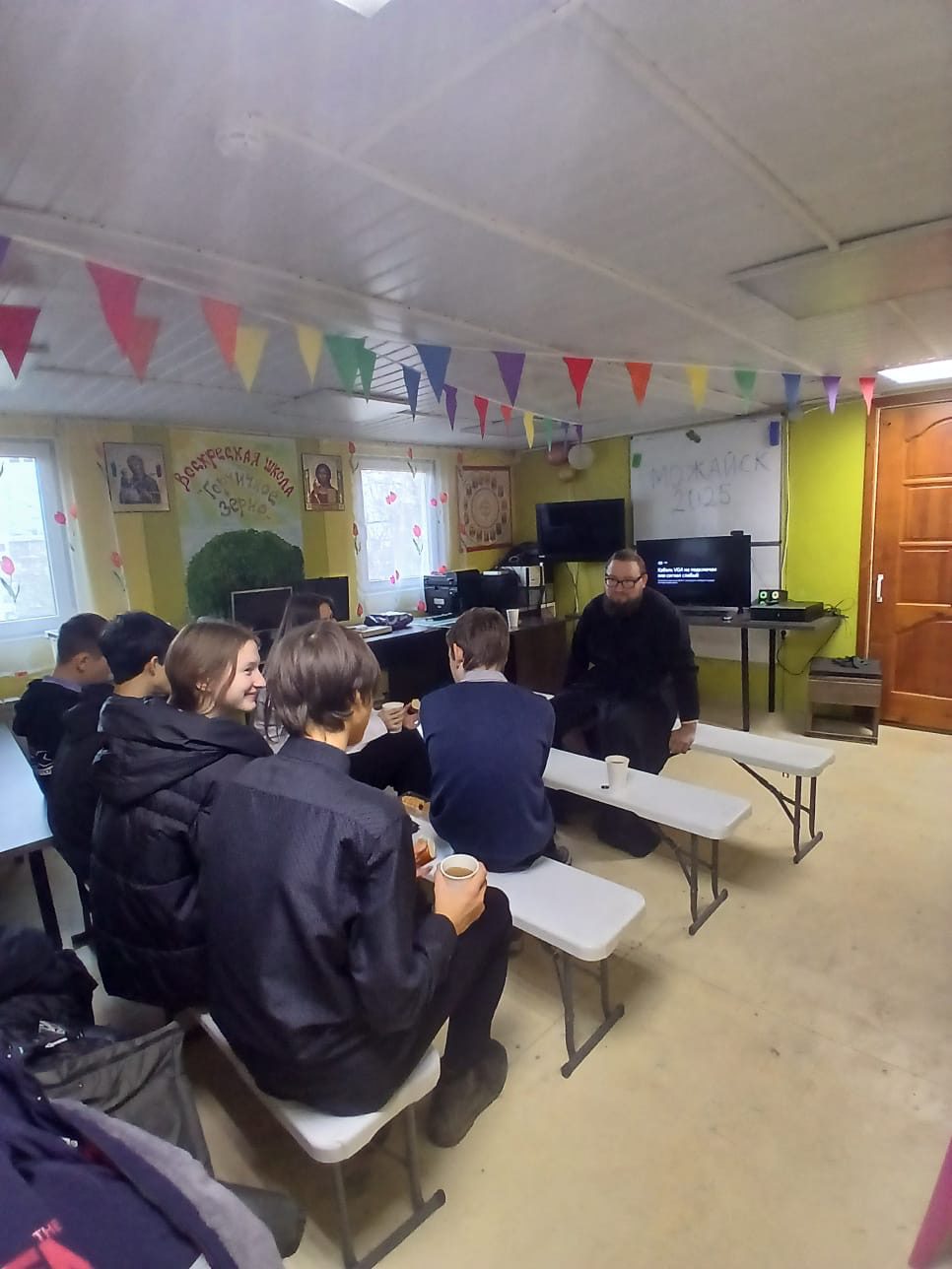 28 ноября 2025 года в рамках епархиальных Рождественских Чтений в воскресной школе «Горчичное зерно» при храме Архангела Михаила города Можайска состоялась встреча с учениками 8-х классов МОУ СОШ №3 (корпус «Павлищево»). Темой обсуждения стало «Целомудрие как фундамент жизни верующего человека и здоровых взаимоотношений».