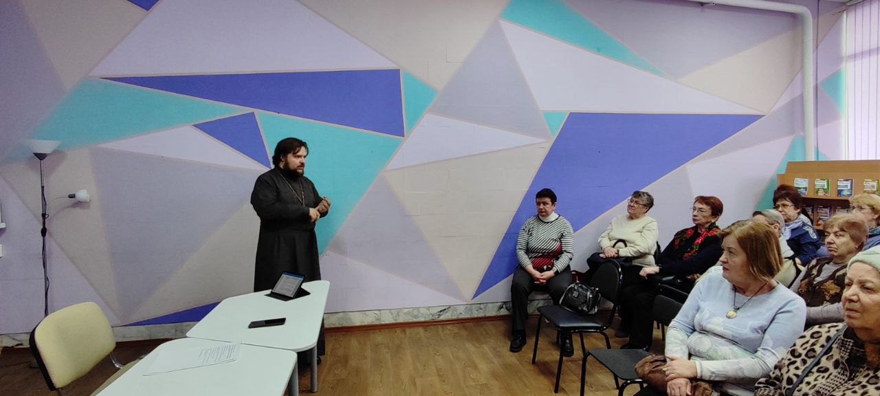 26 февраля в Можайской городской библиотеке прошла встреча священника Георгия Молчанова с участниками программы “Активное Долголетие”.