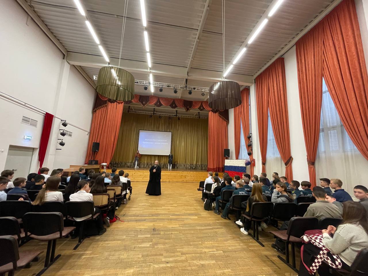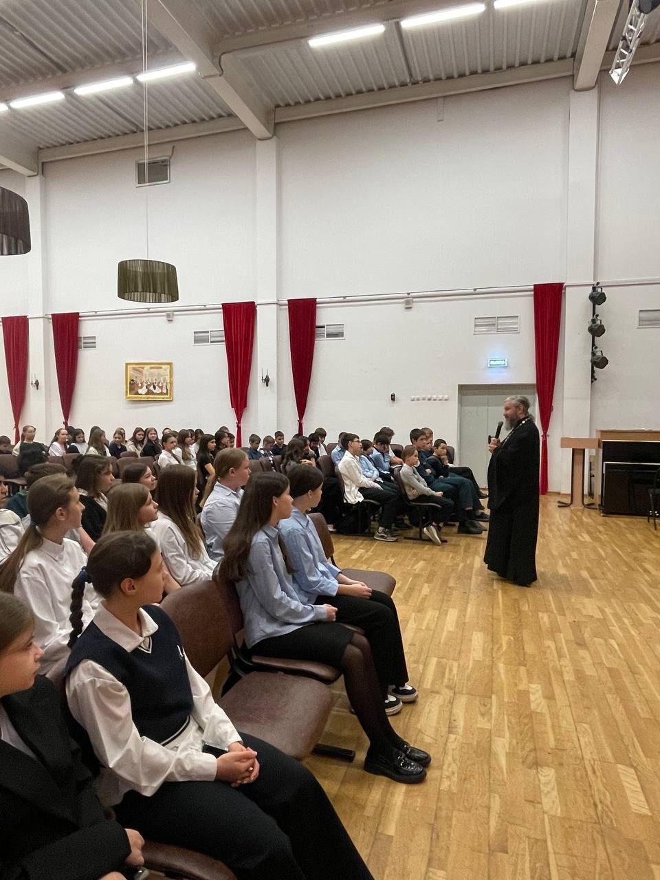 24 ноября в МБОУ Школа “КвантУм” г. Звенигорода состоялась встреча в рамках Рождественских чтений 2026 г. «Просвещение и нравственность: формирование личности и вызовы времени» для учащихся 5-9 классов. Беседу с ребятами провёл заместитель благочинного Звенигородского благочиннического округа иерей Николай Куренков.