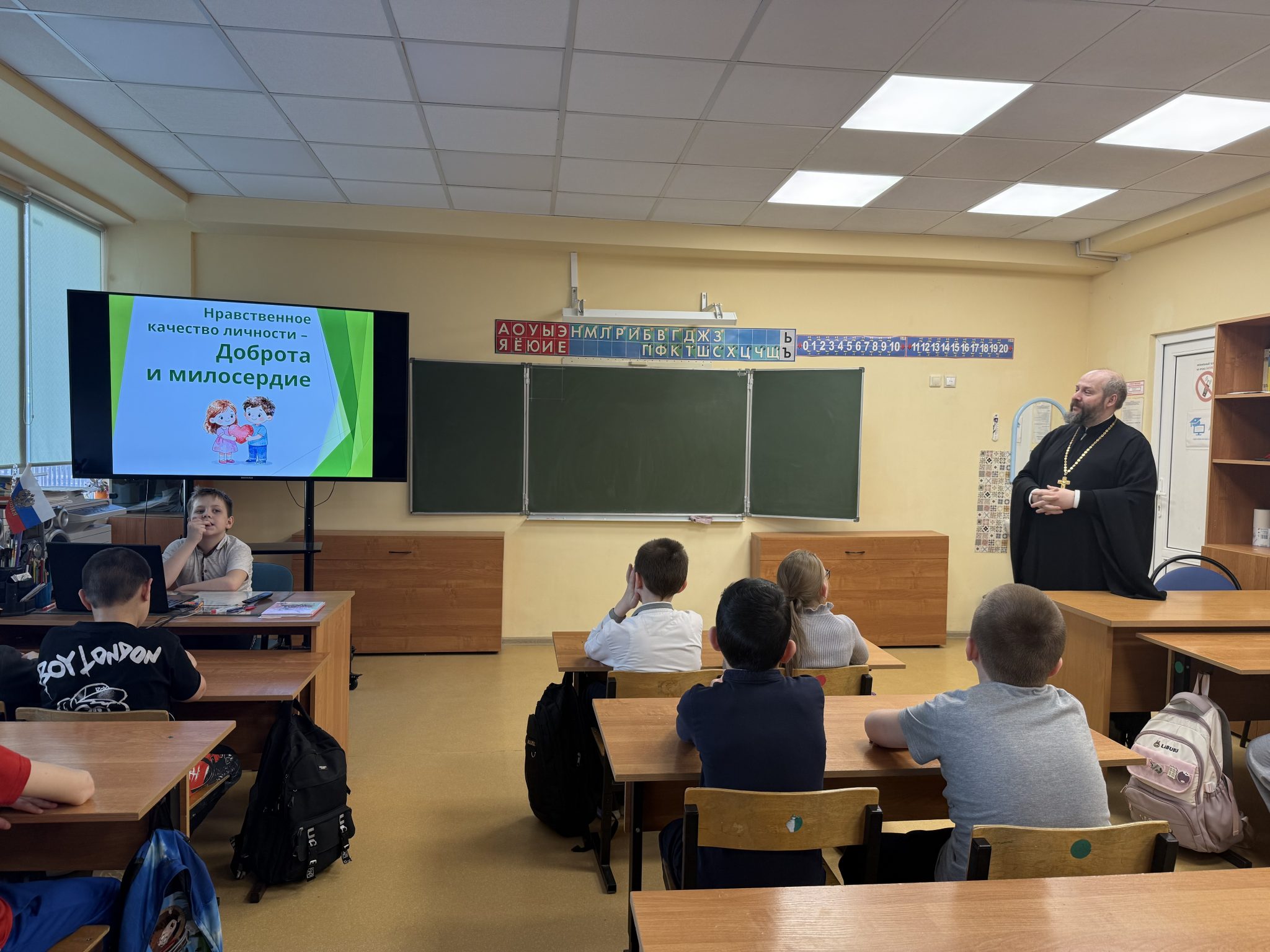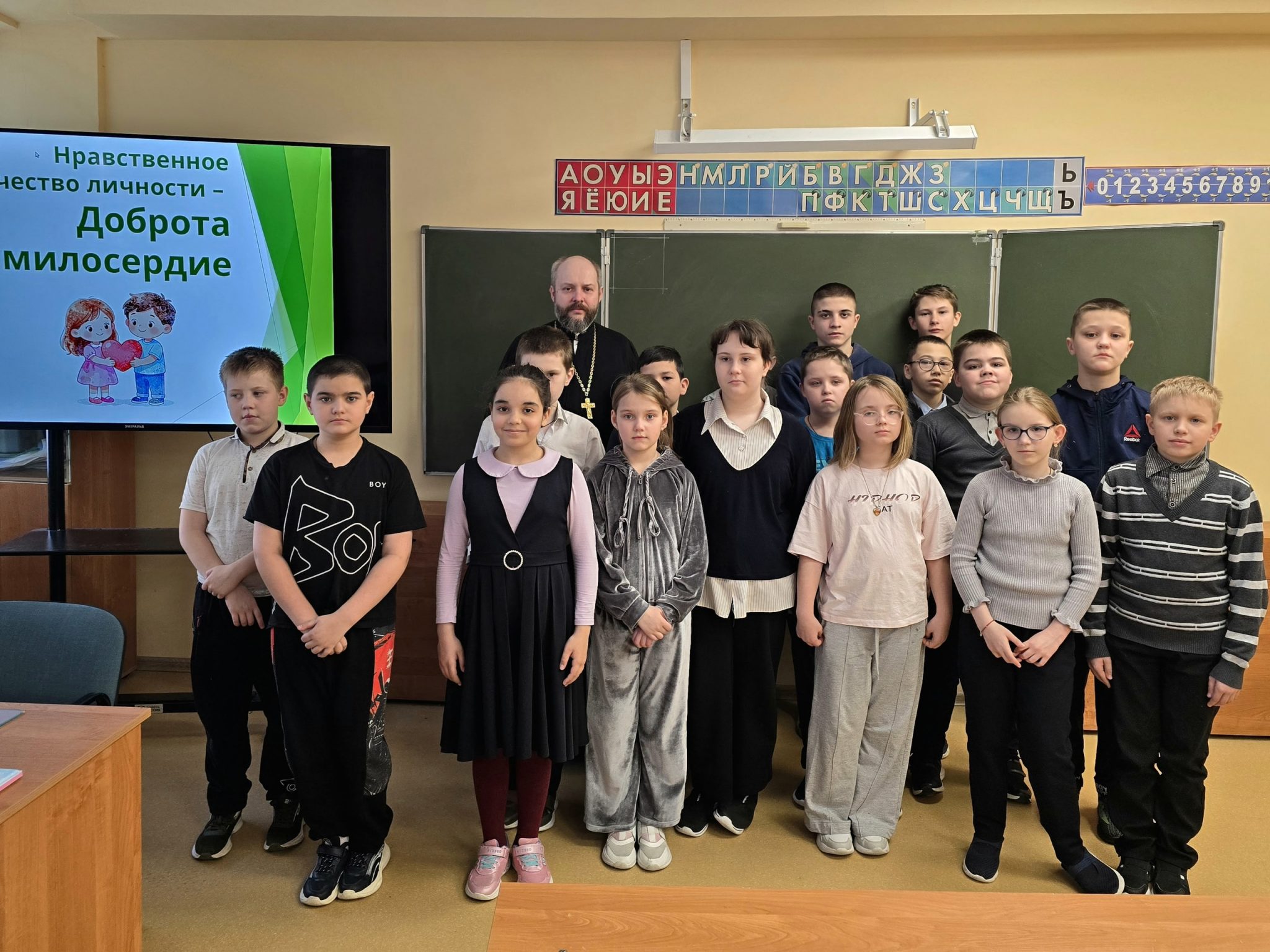 17 марта священник Михаил Завитаев продолжил цикл занятий “Нравственные качества личности” в 4 классе Волоколамской школы-интернат. Была разобрана тема “Доброта и милосердие”.