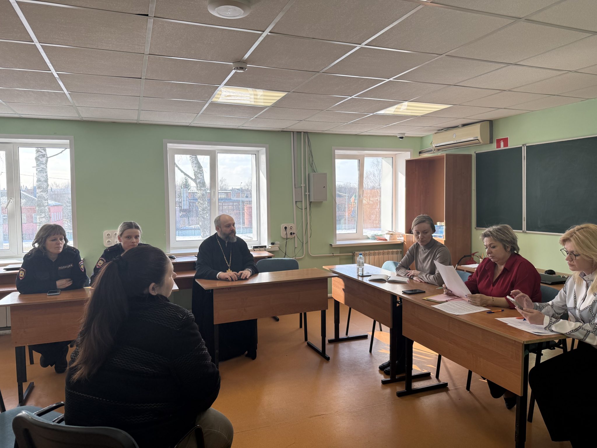 По окончании урока отец Михаил принял участие в работе Совета профилактики, на котором рассматривалось поведение трудных подростков.
