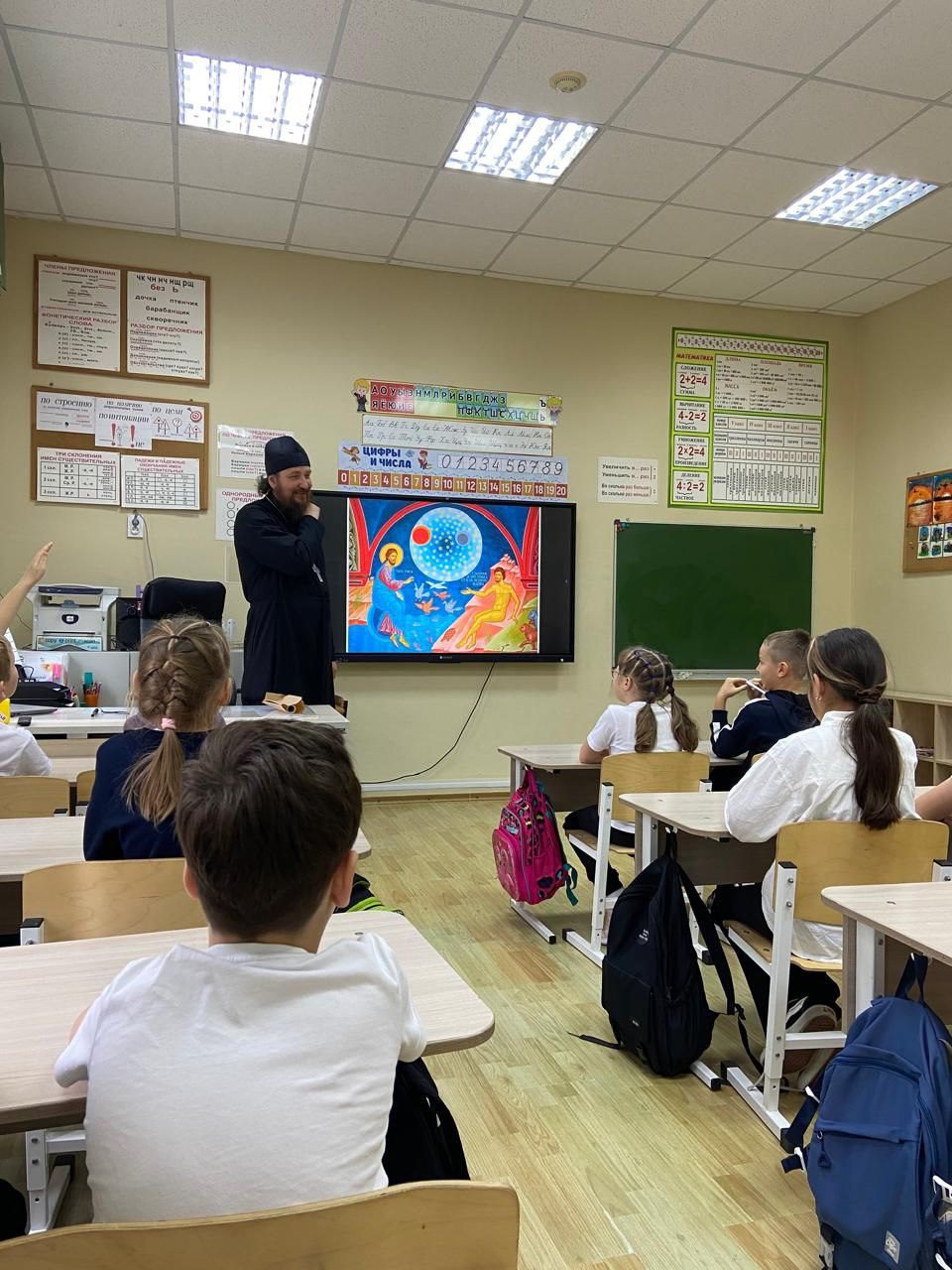 29 октября состоялись встречи настоятеля Александро-Невского храма г. Звенигорода протоиерея Александра Карлюка с учащимися 1, 2 и 3 классов Фуньковского отделения Звенигородской средней общеобразовательной школы “КвантУм”. Ребята беседовали со своим гостем на разные темы. Речь шла о дружбе, о покаянии и прощении, а с ребятами 3-го класса отец Александр поговорил о происхождении мира и человека.