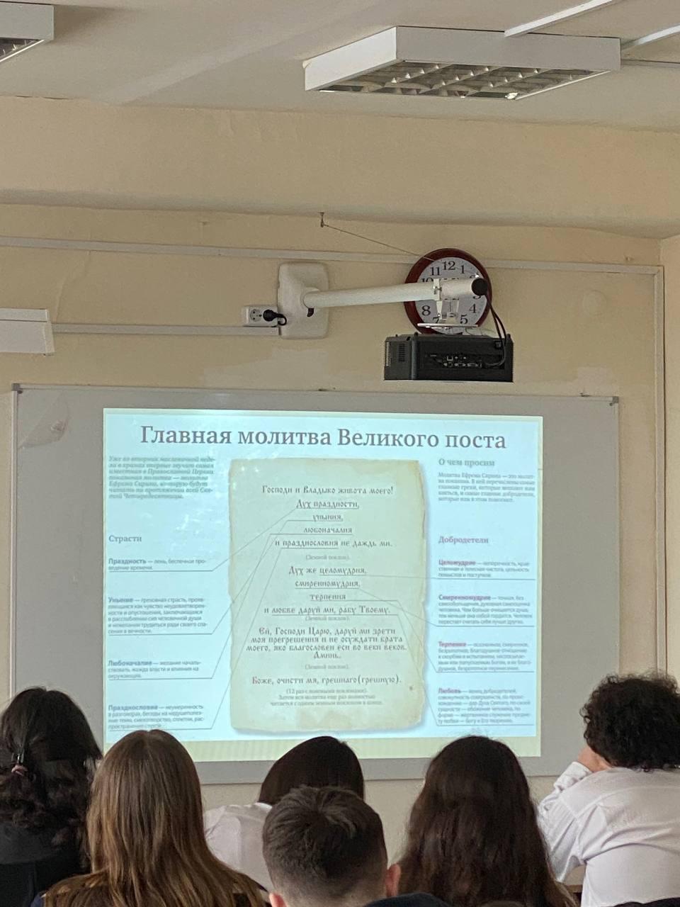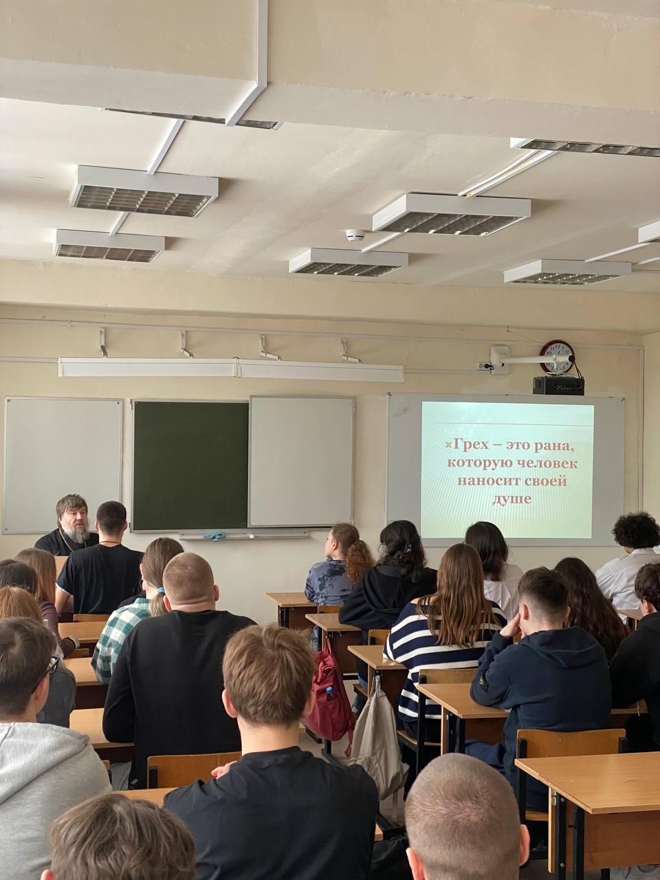 3-го и 6-го марта благочинный Рузского округа протоиерей Игорь Лепешинский провел два занятия с учащимися 10-х и 11-х классов Рузской гимназии №1 на тему: «Покаяние. Грех. Великий пост». По окончании урока о. Игорь ответил на вопросы.