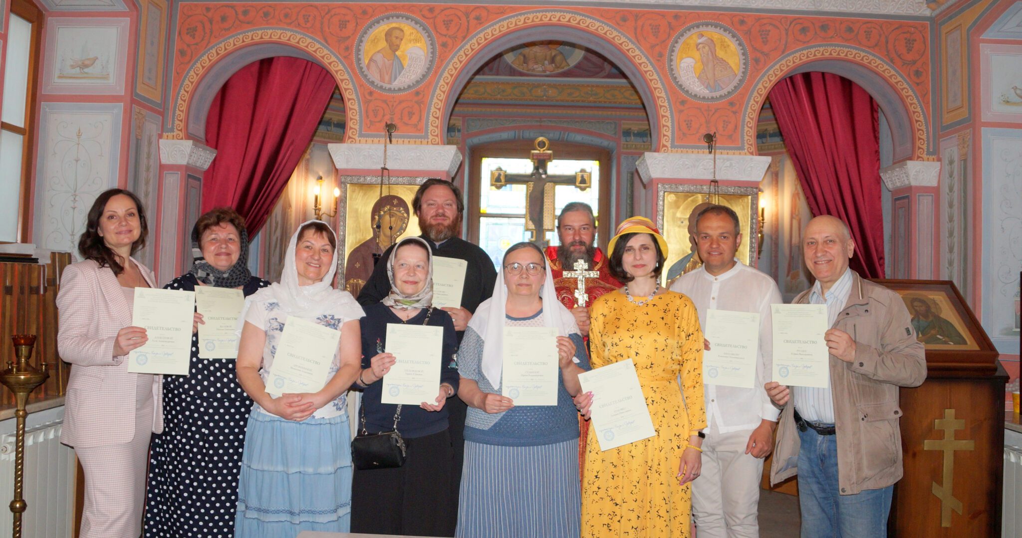 23 мая прошло выпускное мероприятие для учащихся Звенигородского отделения библейско-богословских курсов им. прп. Сергия Радонежского. В крестильном Предтеченском храме священник Николай Куренков отслужил благодарственный молебен, закончившим обучение были торжественно вручены свидетельства об окончании курсов. Выпускники обратились со словами благодарности к преподавателям: священникам Николаю Куренкову, Михаилу Фёдорову и Виталию Фомиченко.