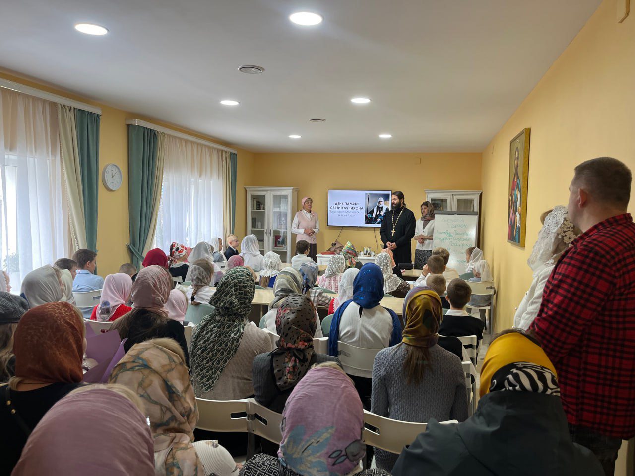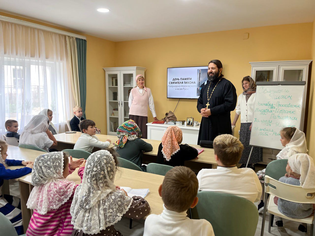 В преддверие дня памяти святителя Тихона, Патриарха Московского и всея России, в честь грядущего 100-летняго юбилея со дня кончины в этом учебном году в воскресной школе Казанского храме села Глебово запланировано несколько мероприятий. Одно из них состоялось 6 октября. Были приглашены родители учеников, педагоги, напутственное слово произнёс настоятель Казанского храма протоиерей Александр Чепрасов. Дети совместно с педагогами подготовили рассказ с презентацией о житии святителя Тихона, прочитали стихи, посвященные его жизни. Очень проникновенно прозвучала «Песня про ангелов» в исполнении всех учеников школы. В завершение открытого урока была проведена викторина на тему фактов жития святителя Тихона. Победители, а в их числе были и ученики, и родители, получили в подарок книги, а все ученики – сладкие подарки. Много нового и интересного узнали дети и родители.