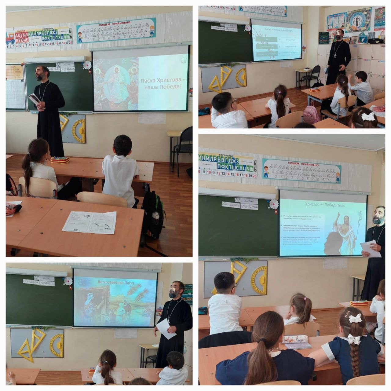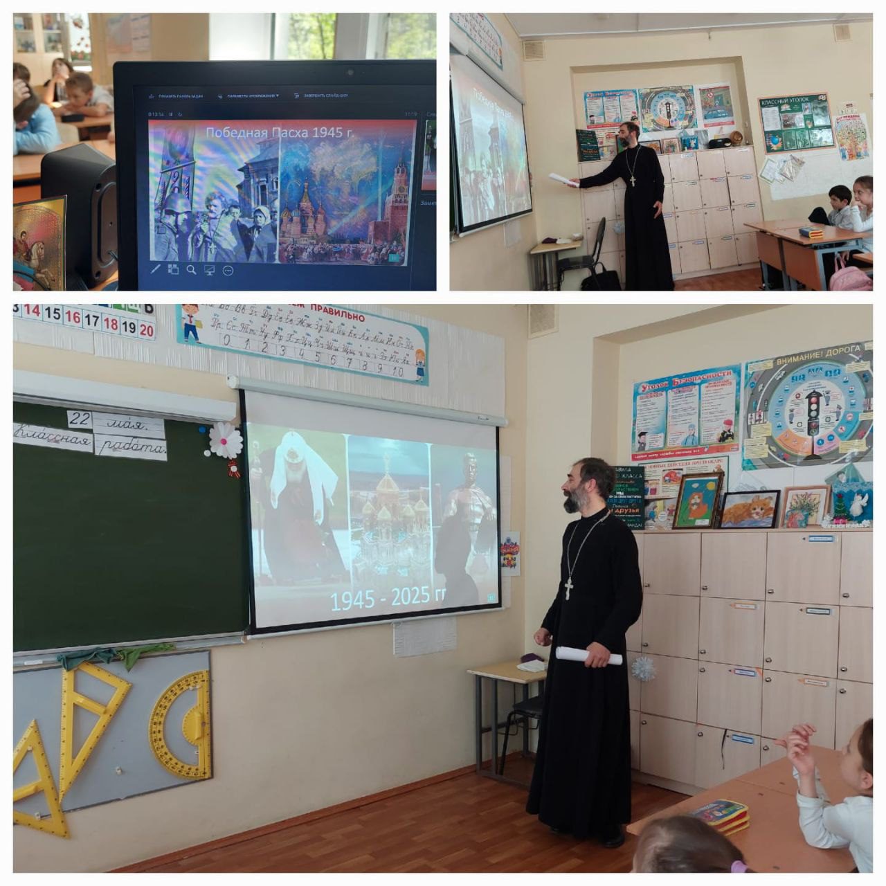 22 мая в рамках миссионерской акции «Пасха Христова – наша Победа» клирик иерей Алексий Кравченко провёл урок в Дедовской школе номер 4 для учащихся 1-х классов. В своём рассказе отец Алексий обратил внимание ребят на то как мы подготавливаем свои души к встрече Светлого праздника Пасхи. Также в разговоре были затронуты темы поминовения воинов: прадедушек и близких родственников положивших свои жизни ради победы. Ученики узнали о роли Русской Православной Церкви в Великой Отечественной войне.