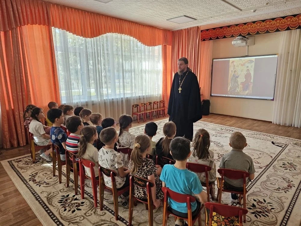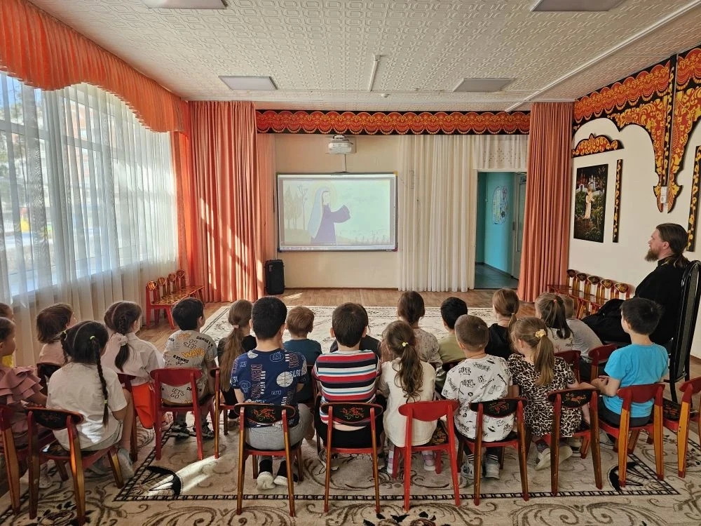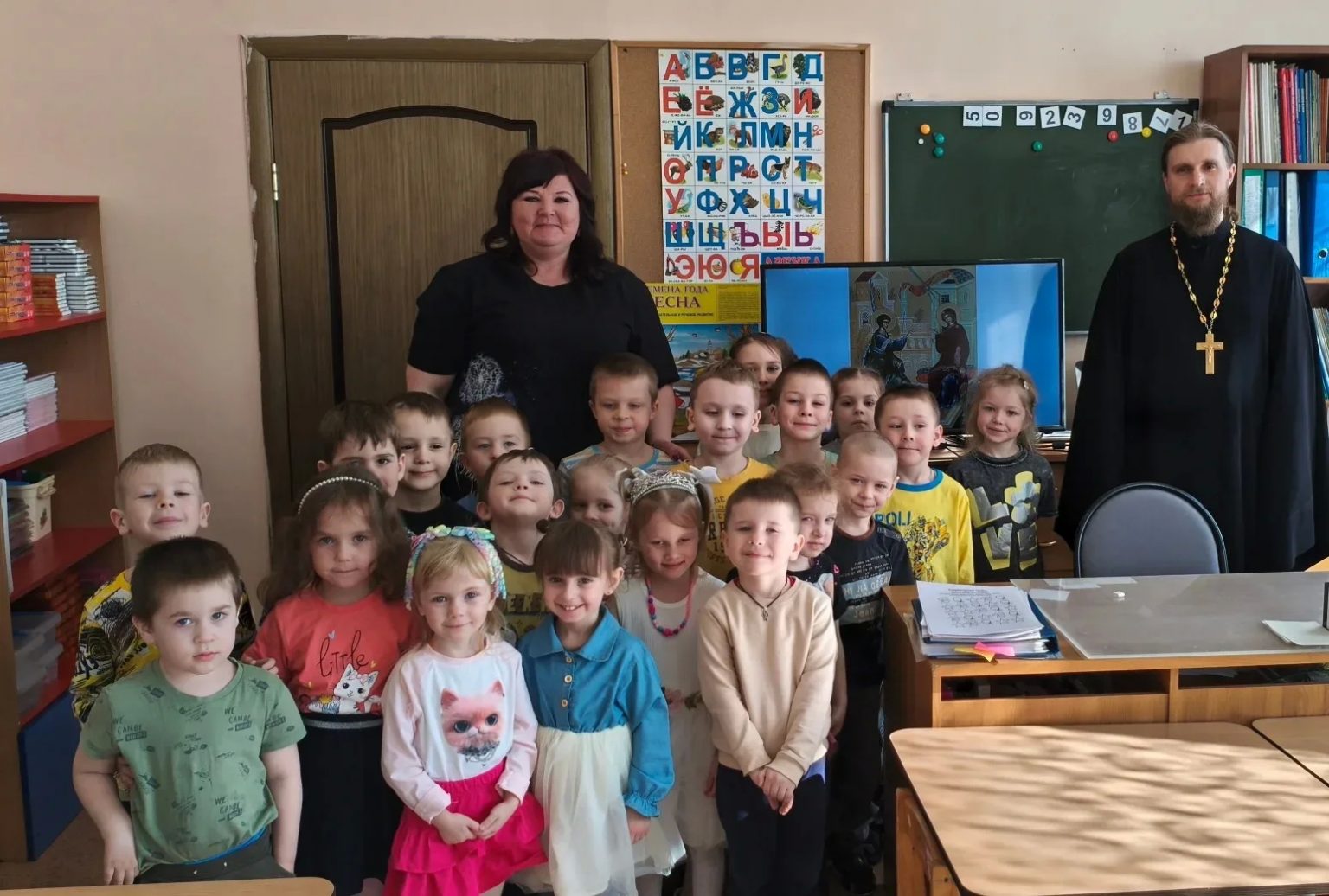 27 марта настоятель Петропавловского храма священник Алексий Вареников посетил детские садики №36 и №44, расположенные в селе Новопетровское. Батюшка поговорил с ребятами о грядущем празднике Благовещения Пресвятой Богородицы: как явился Пресвятой Деве Марии архангел Гавриил, и она со смирением и покорностью приняла эту весть. Малыши с интересом слушали батюшку и задавали вопросы. В конце встречи все посмотрели мультфильм Свято-Елизаветинского монастыря «Благовещение».